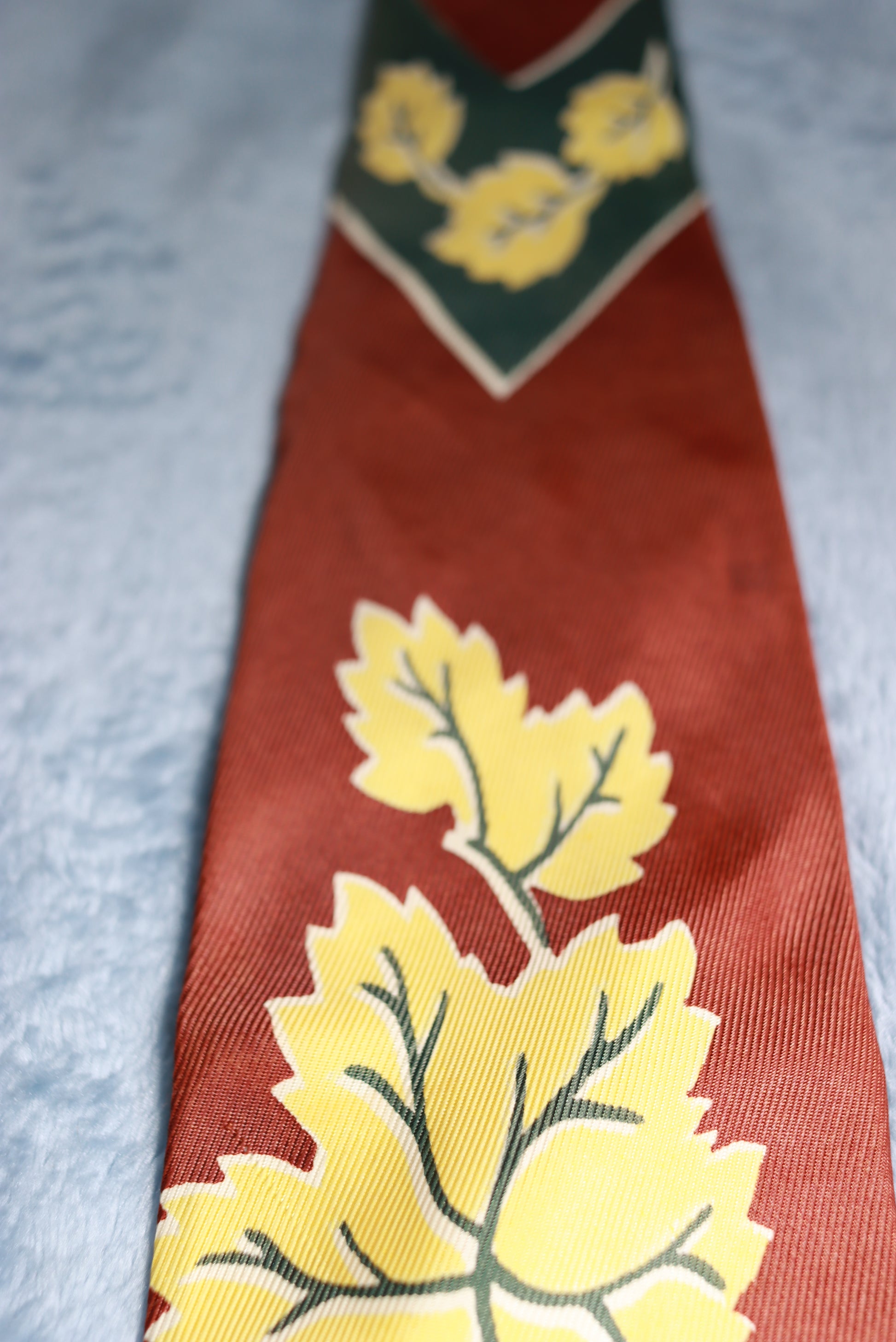 Asymmetrical Brown & Green Leaves Vintage Tie 1940s/50s