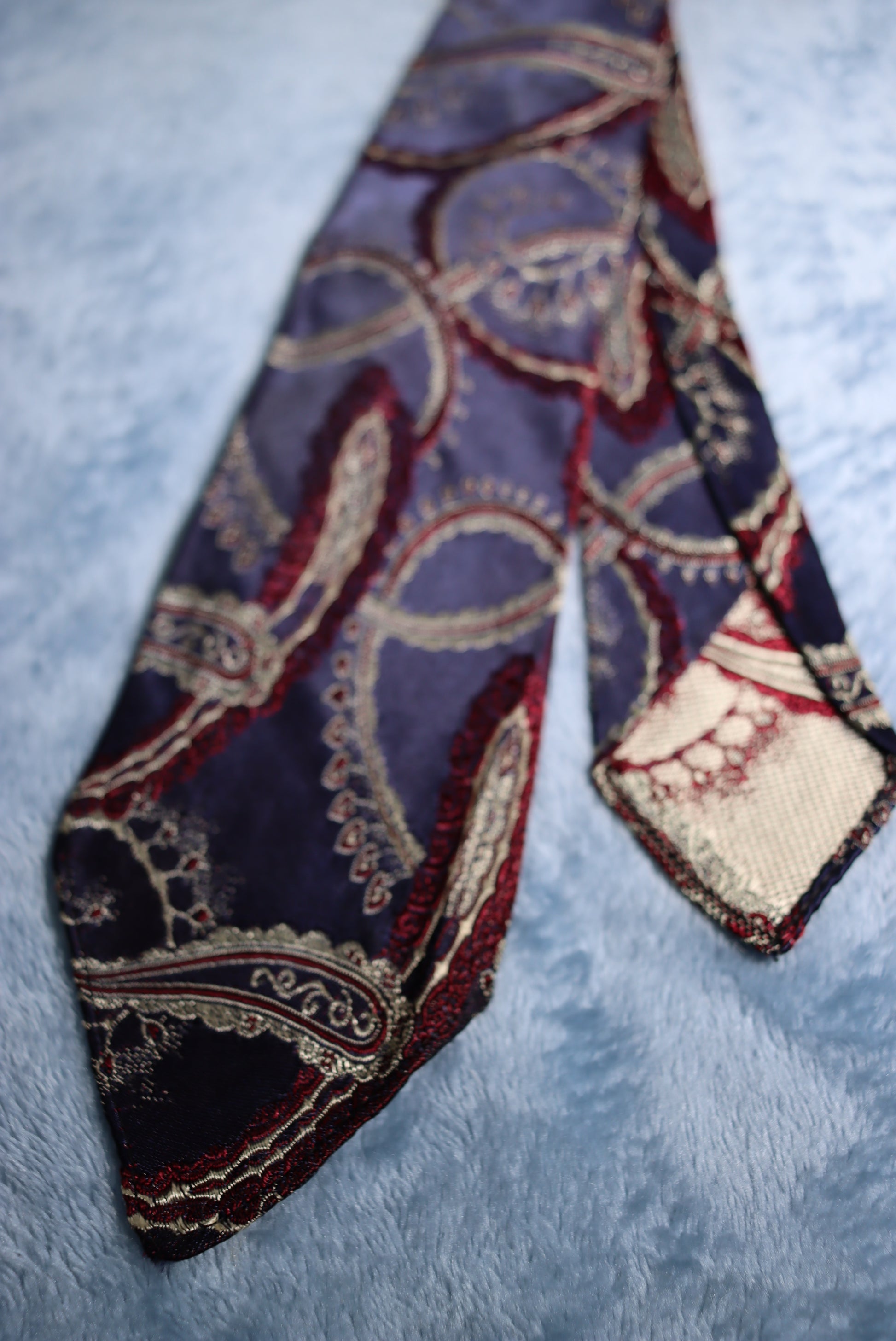 Blue Silver Burgundy Woven Paisley Vintage Swing Tie 1940s/50s