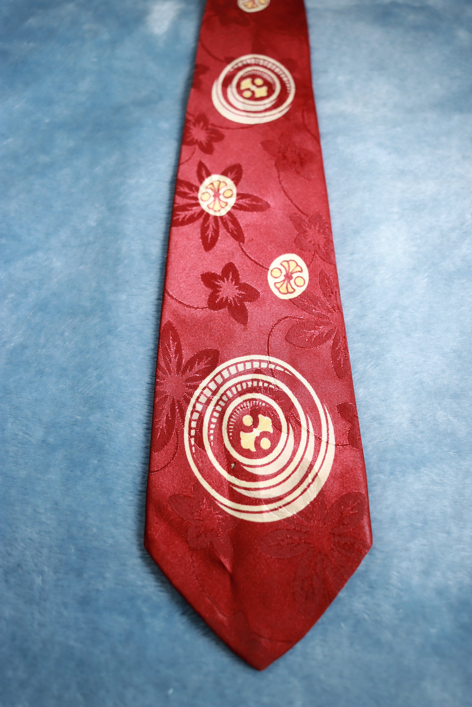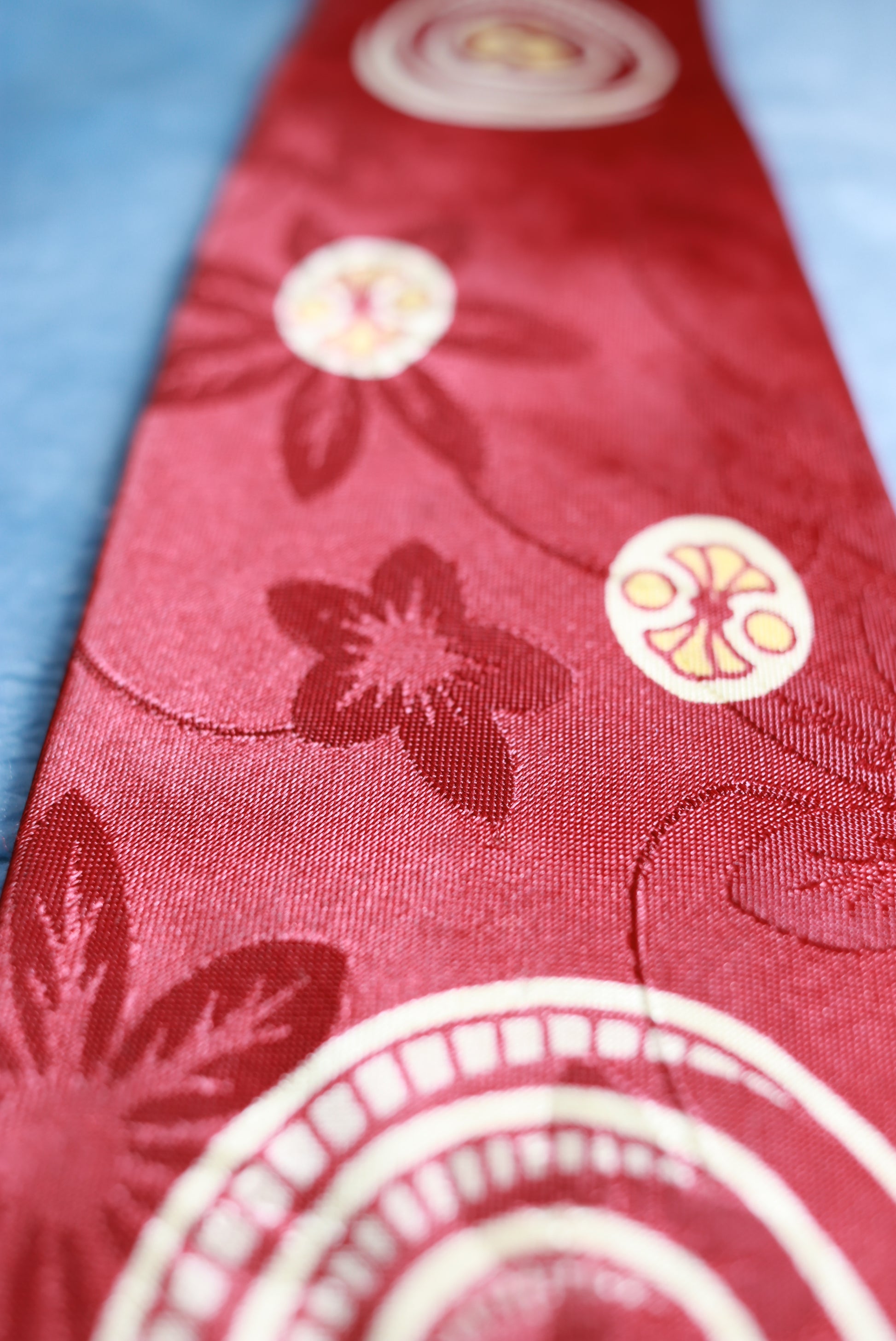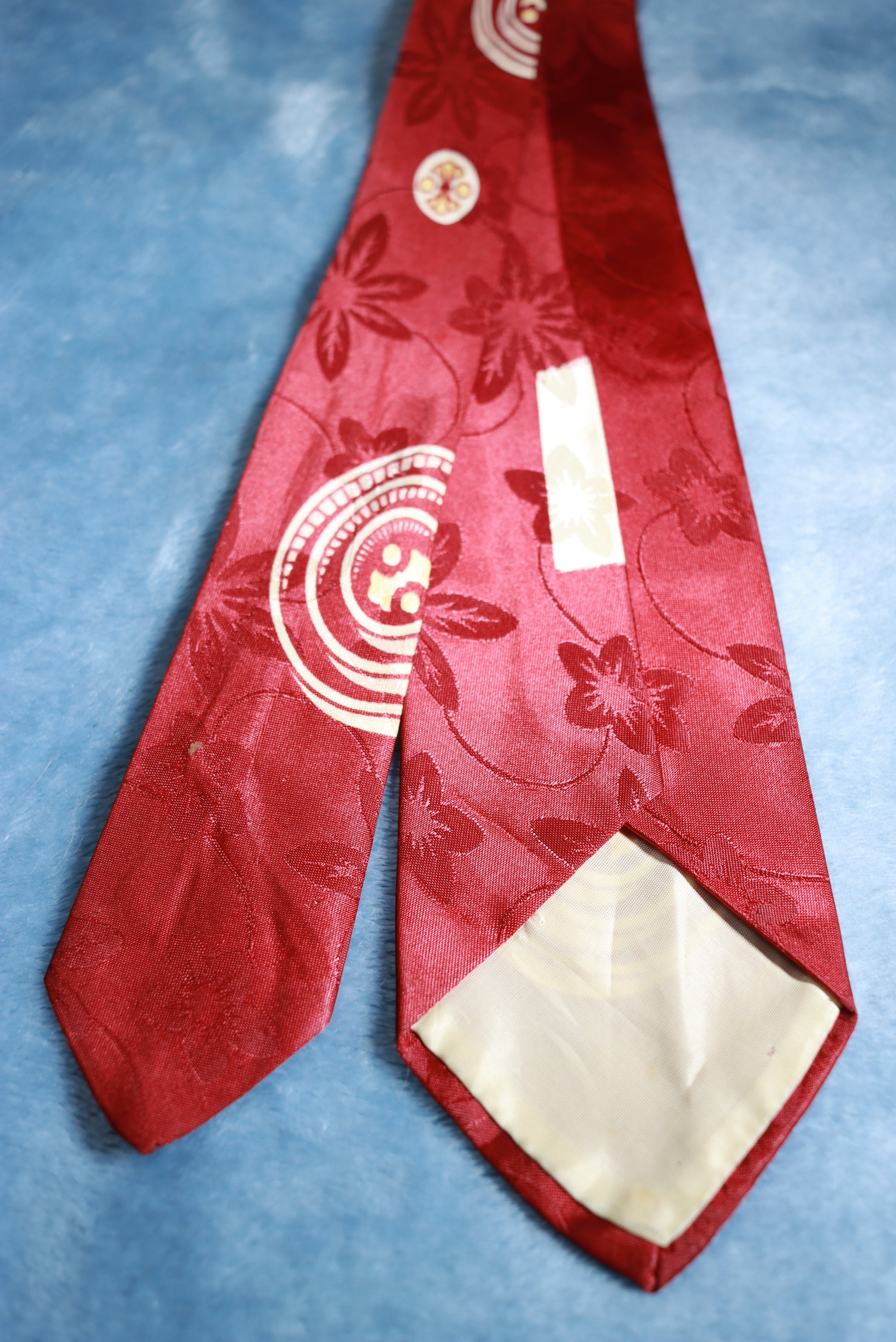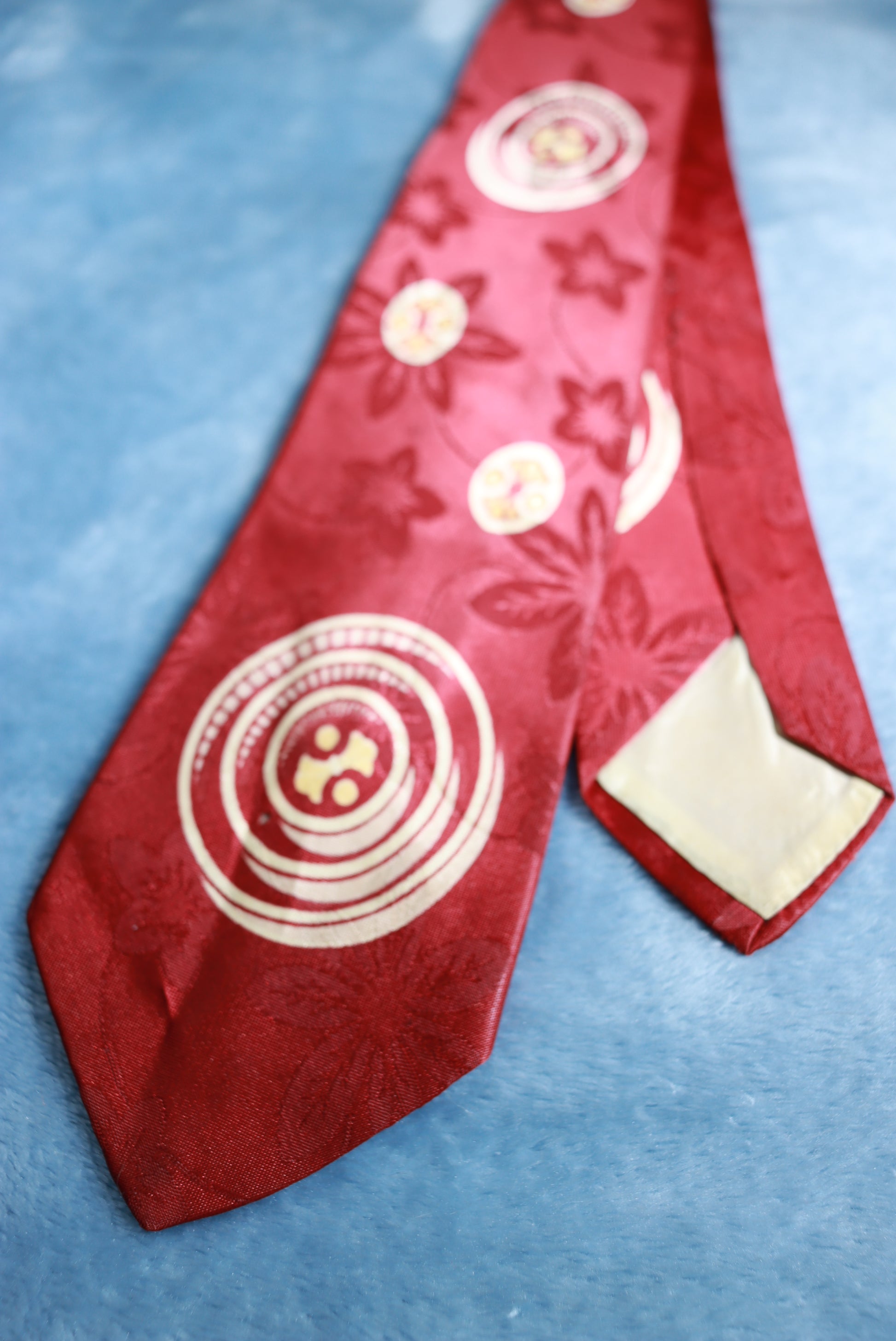 Burgundy and Cream Jacquard Vintage Tie 1940s/50s