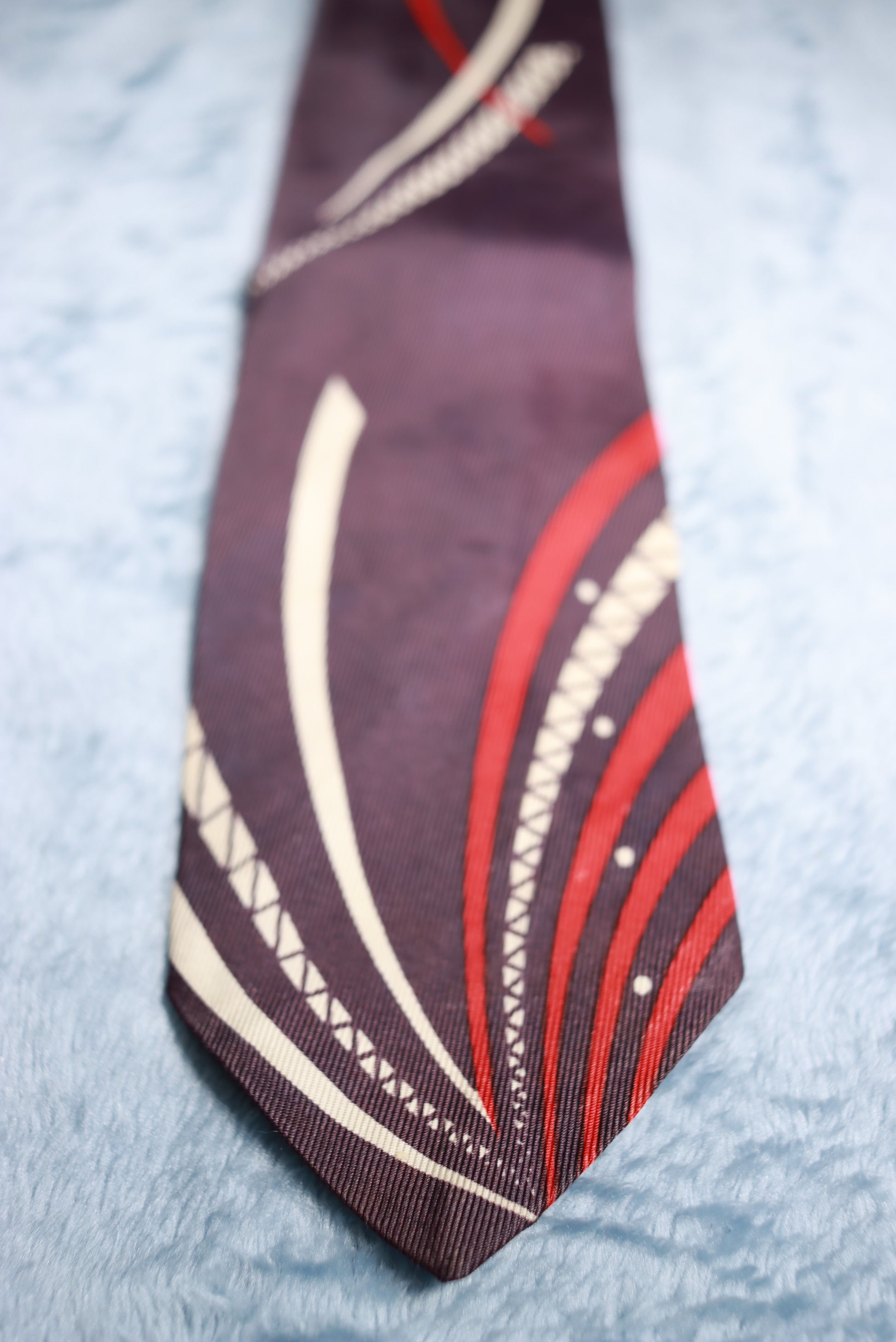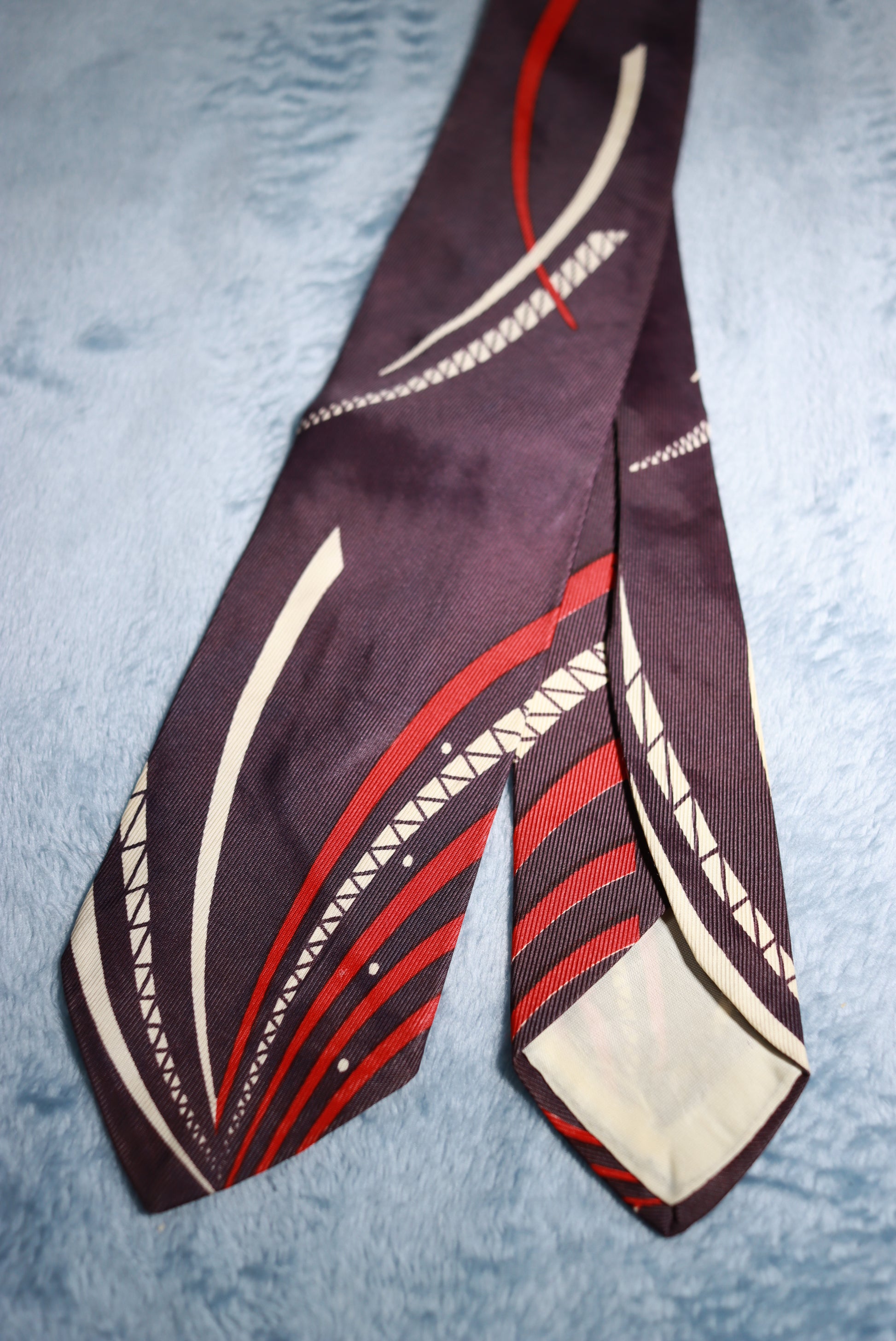 Dark Blue Red & White Strokes Vintage Tie 1940s/50s