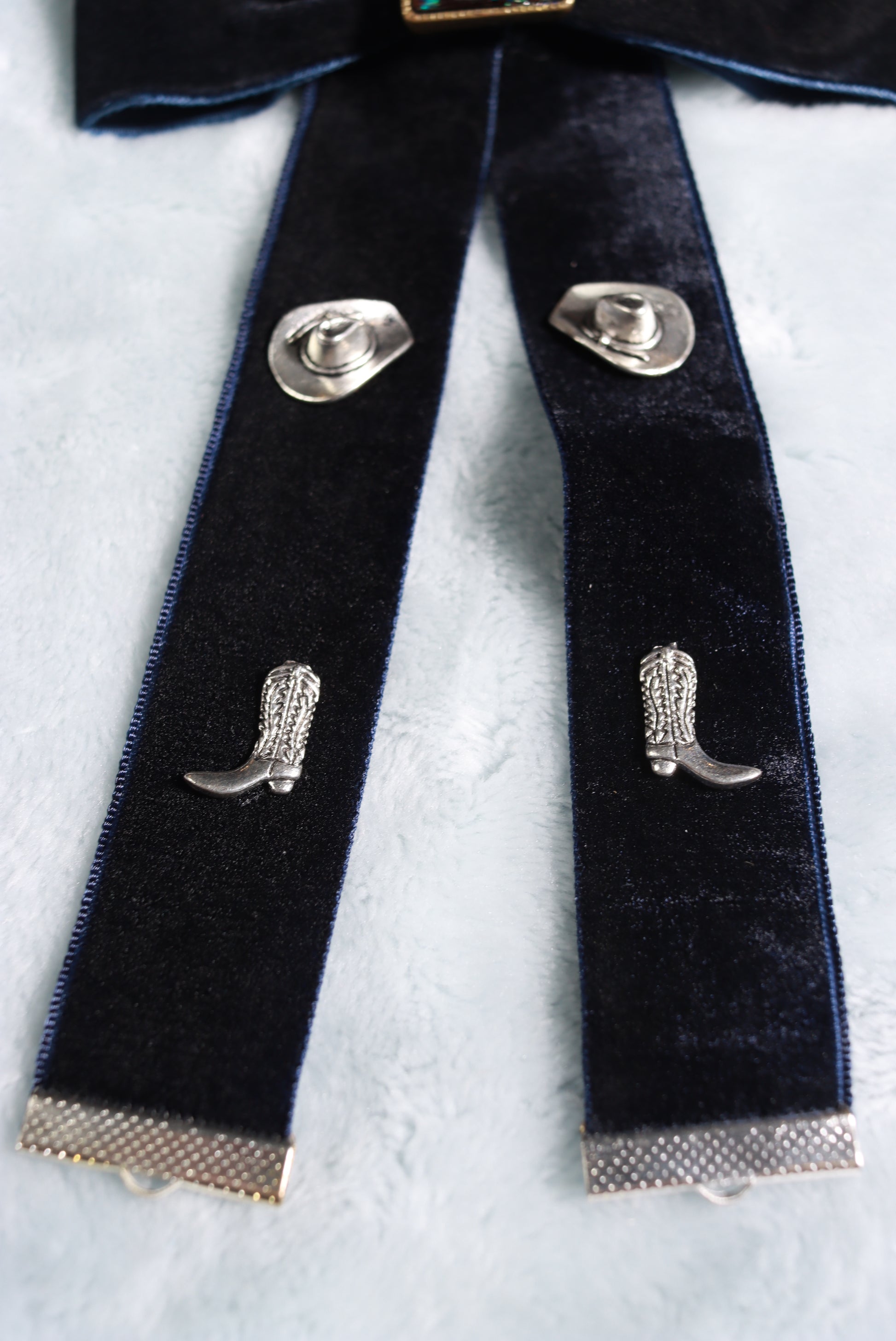 New Navy Velvet Glitter Stone Cowboy Hats and Boots Western Kentucky Bow Tie