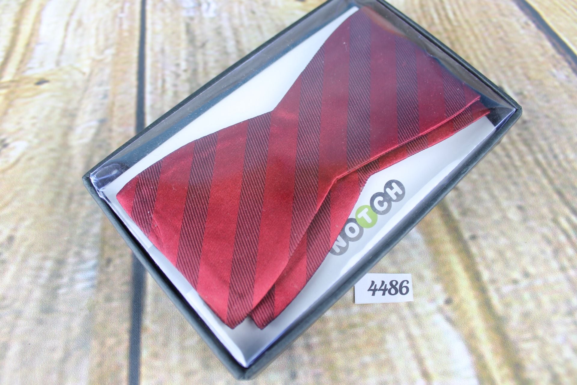 Notch Self Tie Straight End Thistle Bow Tie Dark Red Broad Stripe New In Box 100% Silk