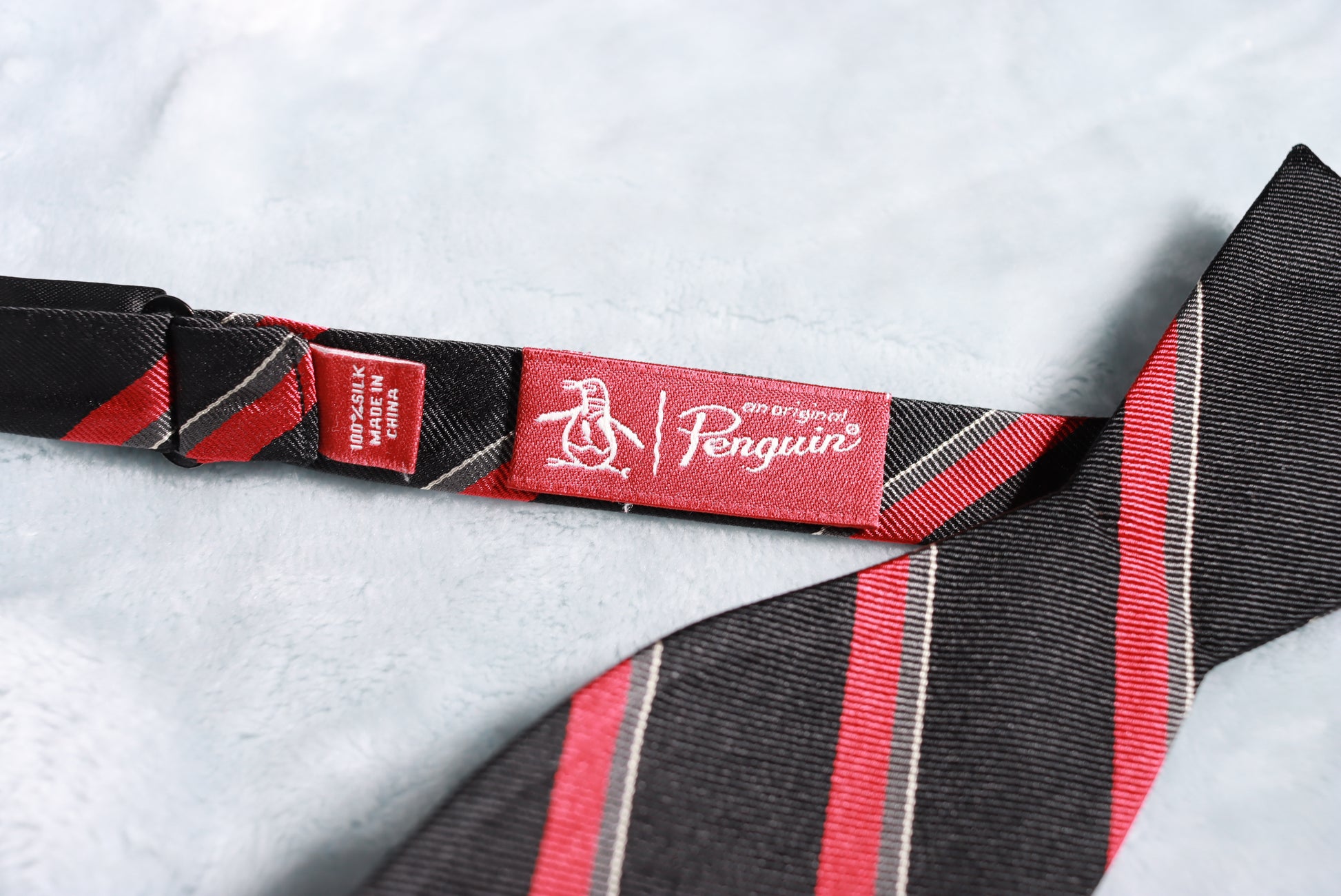 Penguin Black Red Stripes Silk Self Tie Bow Tie New Unworn