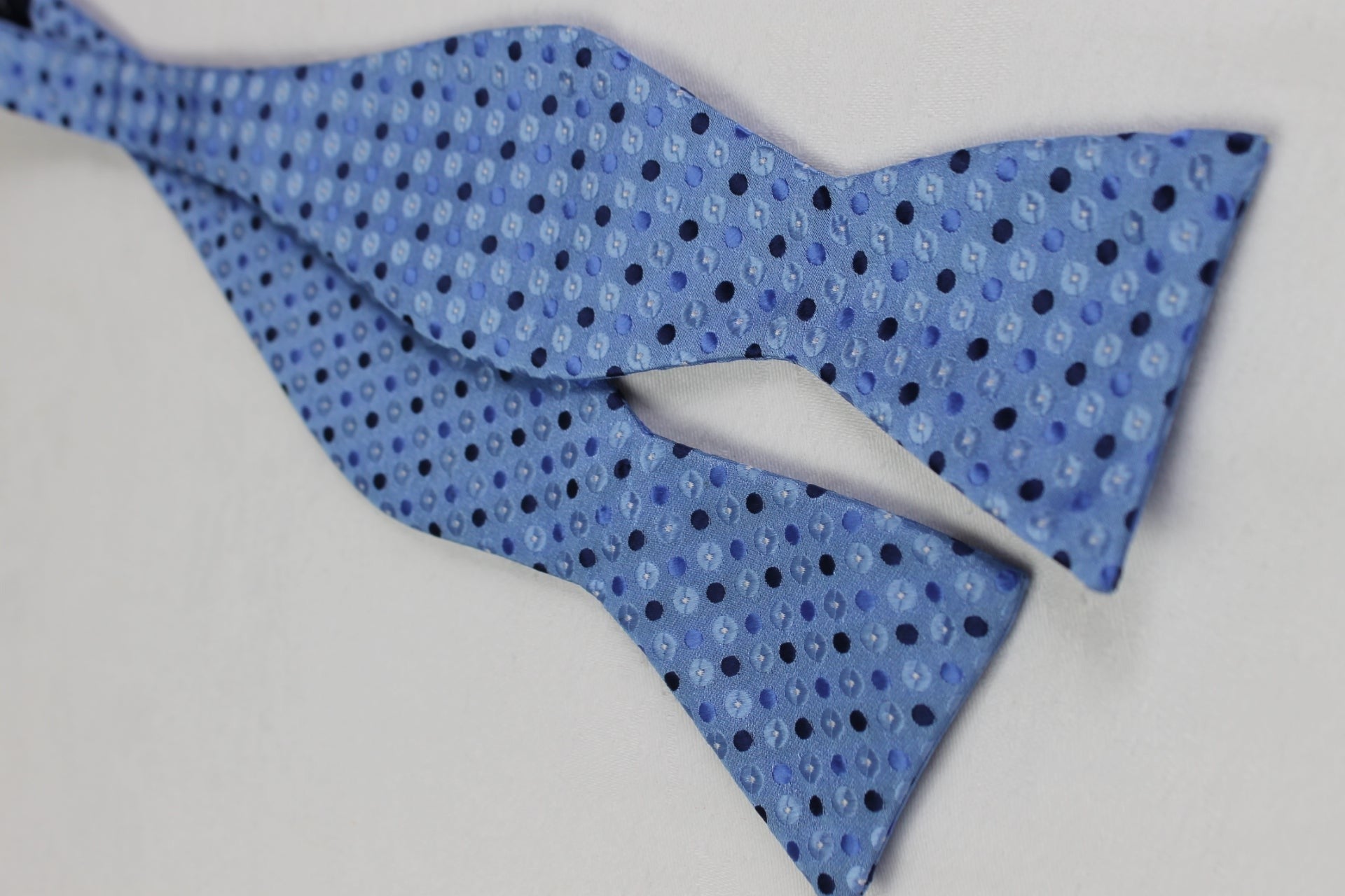 Stafford Pale Blue Polka dot Self Tie Straight End Thistle Bow Tie