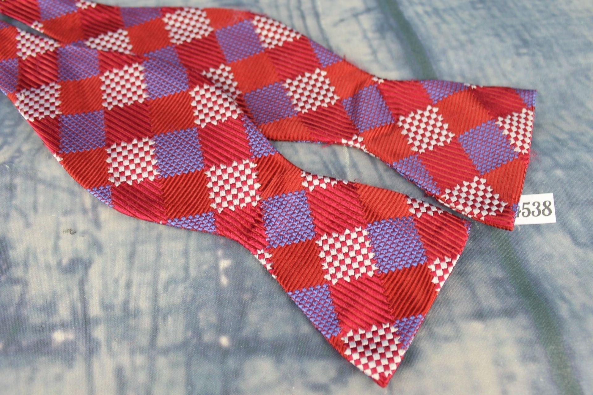 Superb Stafford Squares Pattern Burgundy Ivory Blue Self Tie Square End Thistle Bow Tie