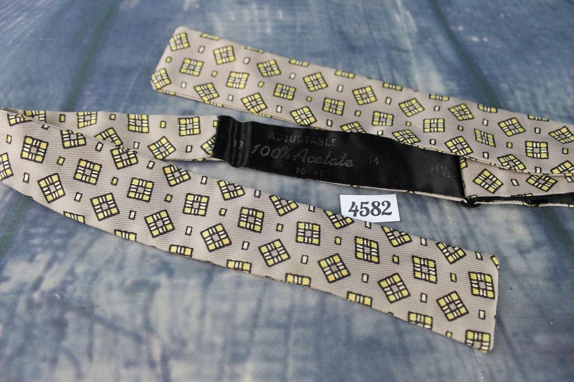 Superb Vintage Taupe Gold Black Self Tie Square End Skinny Bow Tie