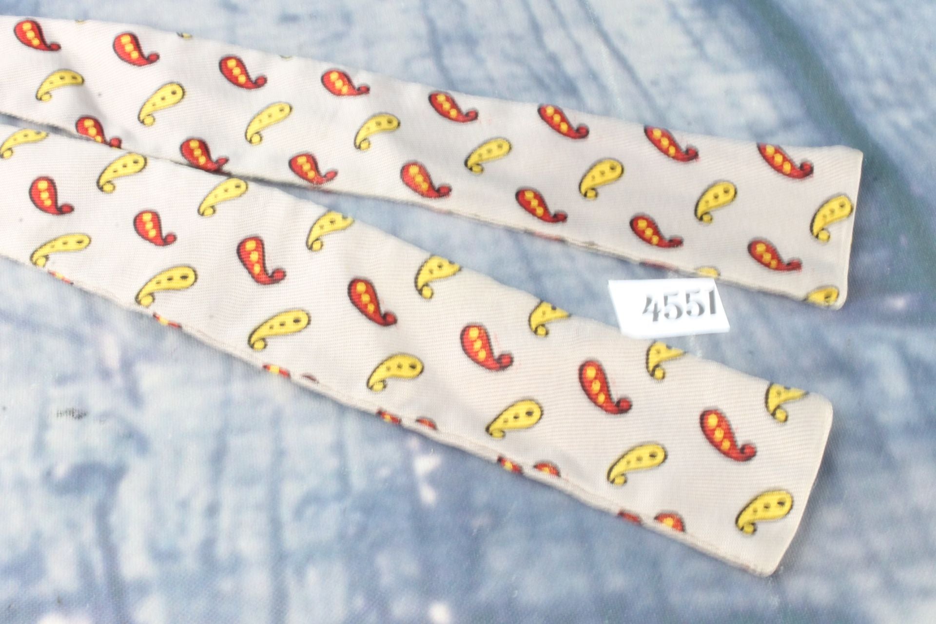 Superb Vintage Taupe Red Gold Paisley Pattern Self Tie Square End Paddle Bow Tie