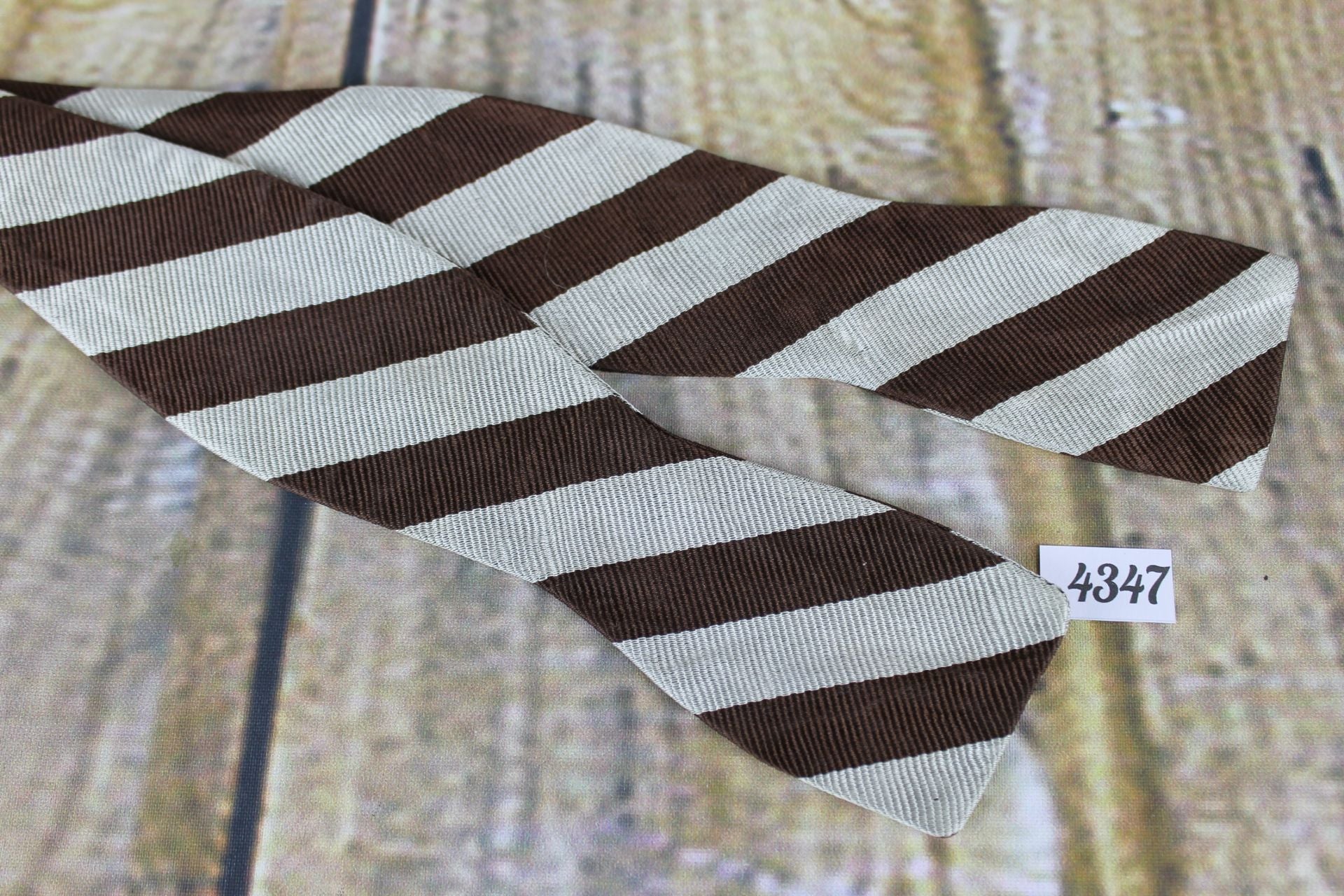 Superb Vintage Van Boven Silver Brown Broad Stripe Self Tie Slim Thistle Bow Tie