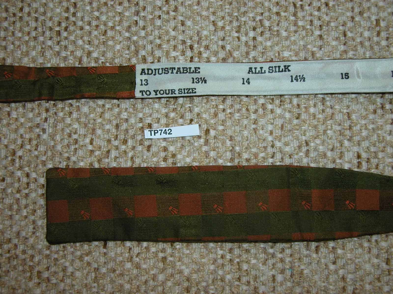 Vintage 100% Silk Self Tie Square End Bow Tie Olive Terracotta Adjustable