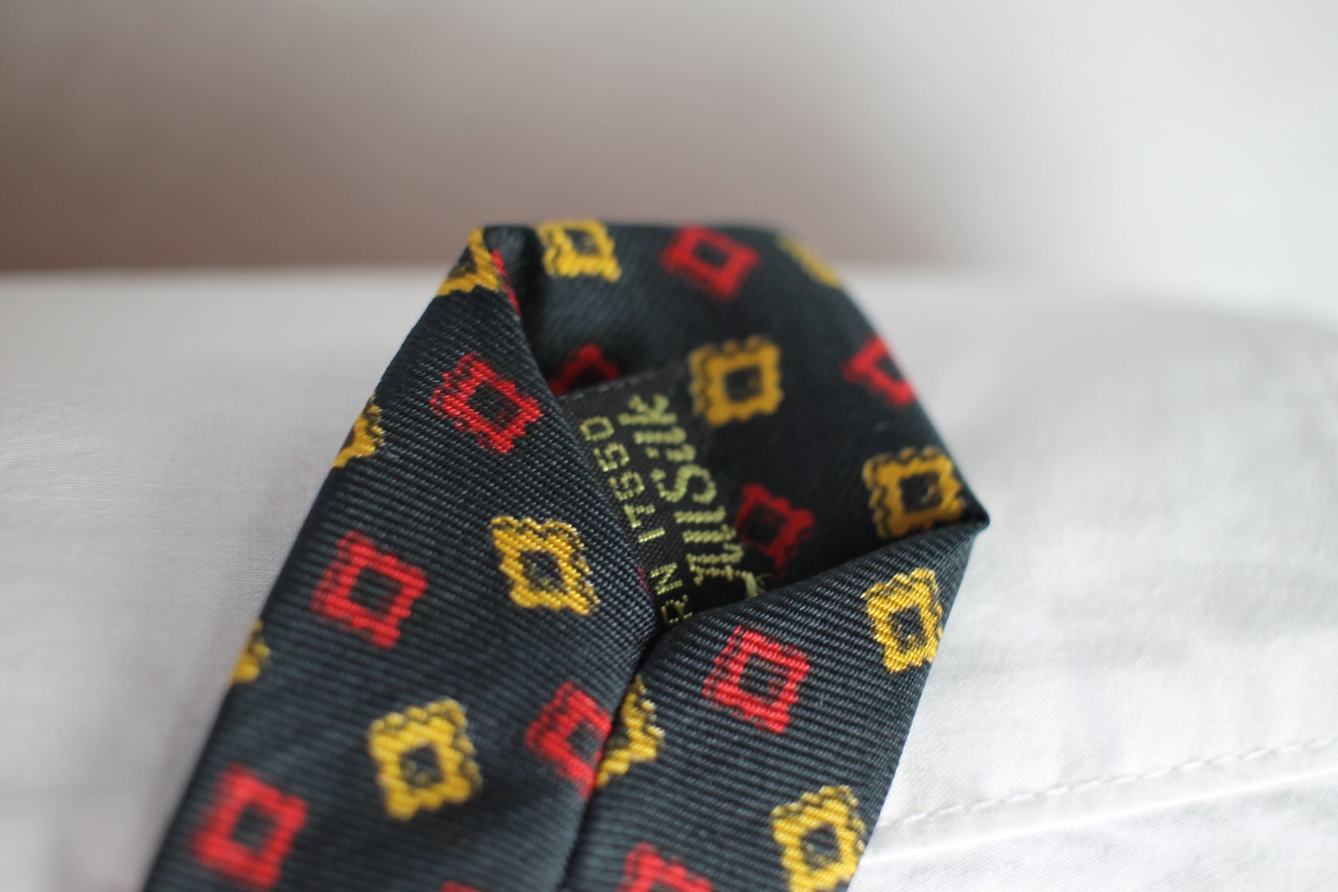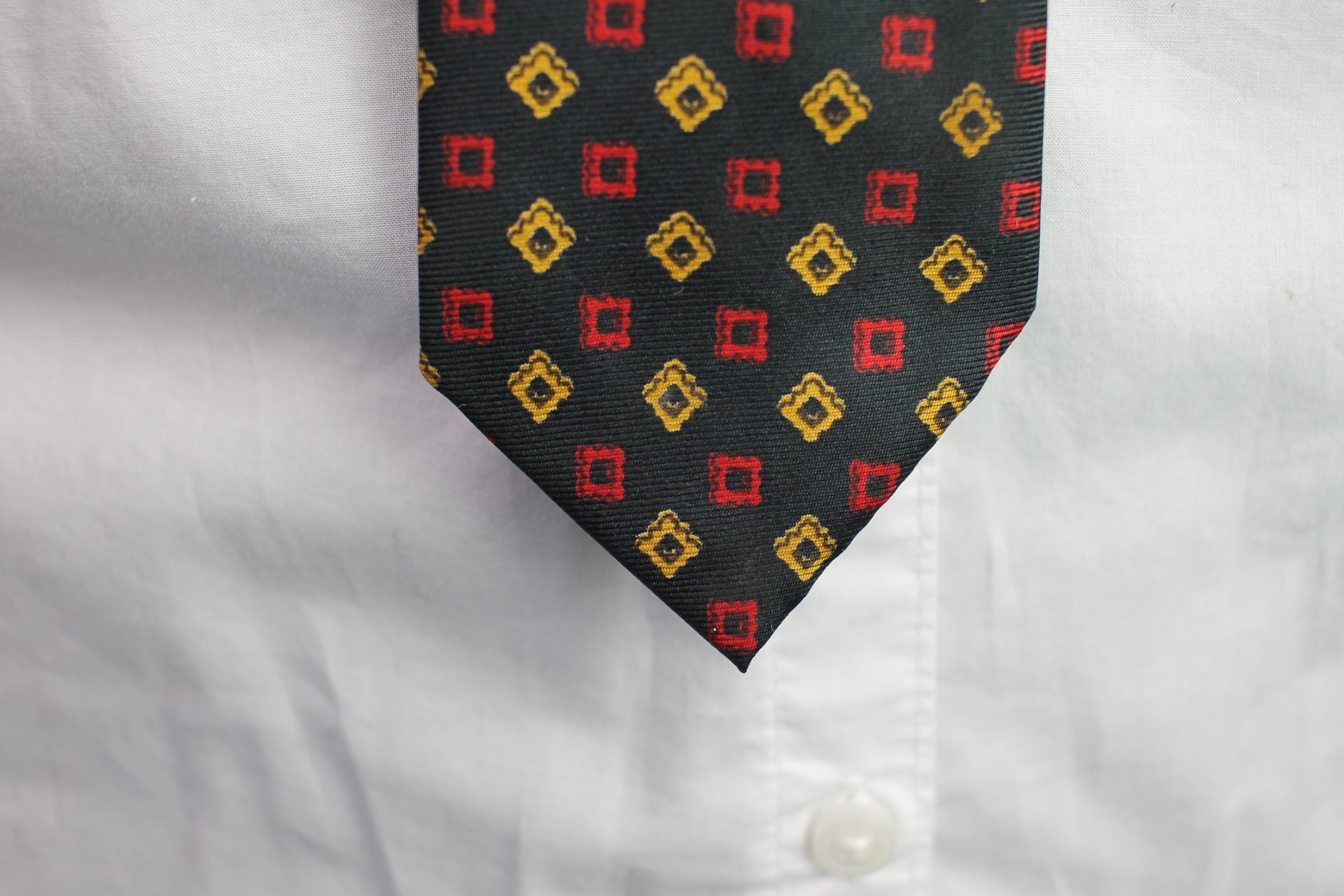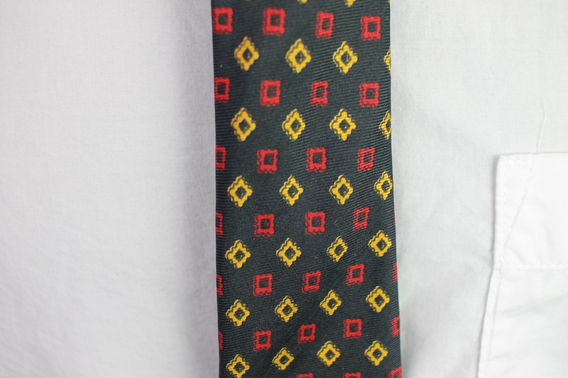 Vintage 1940s/50s all silk black red gold squares pattern tie