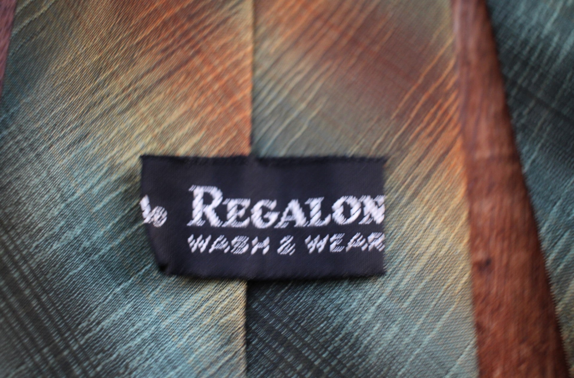 Vintage 1960s Regalon green orange yellow faded striped tie