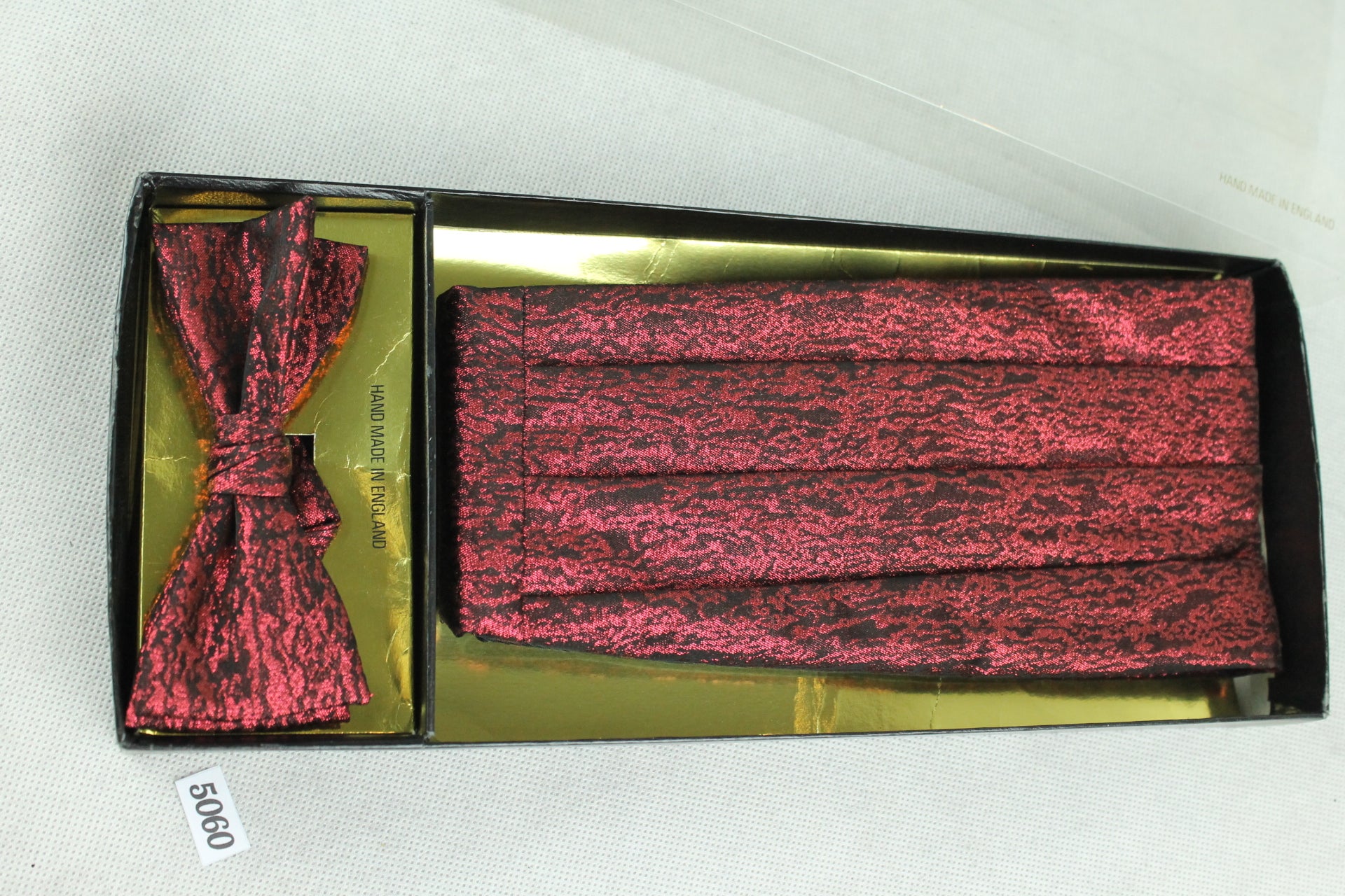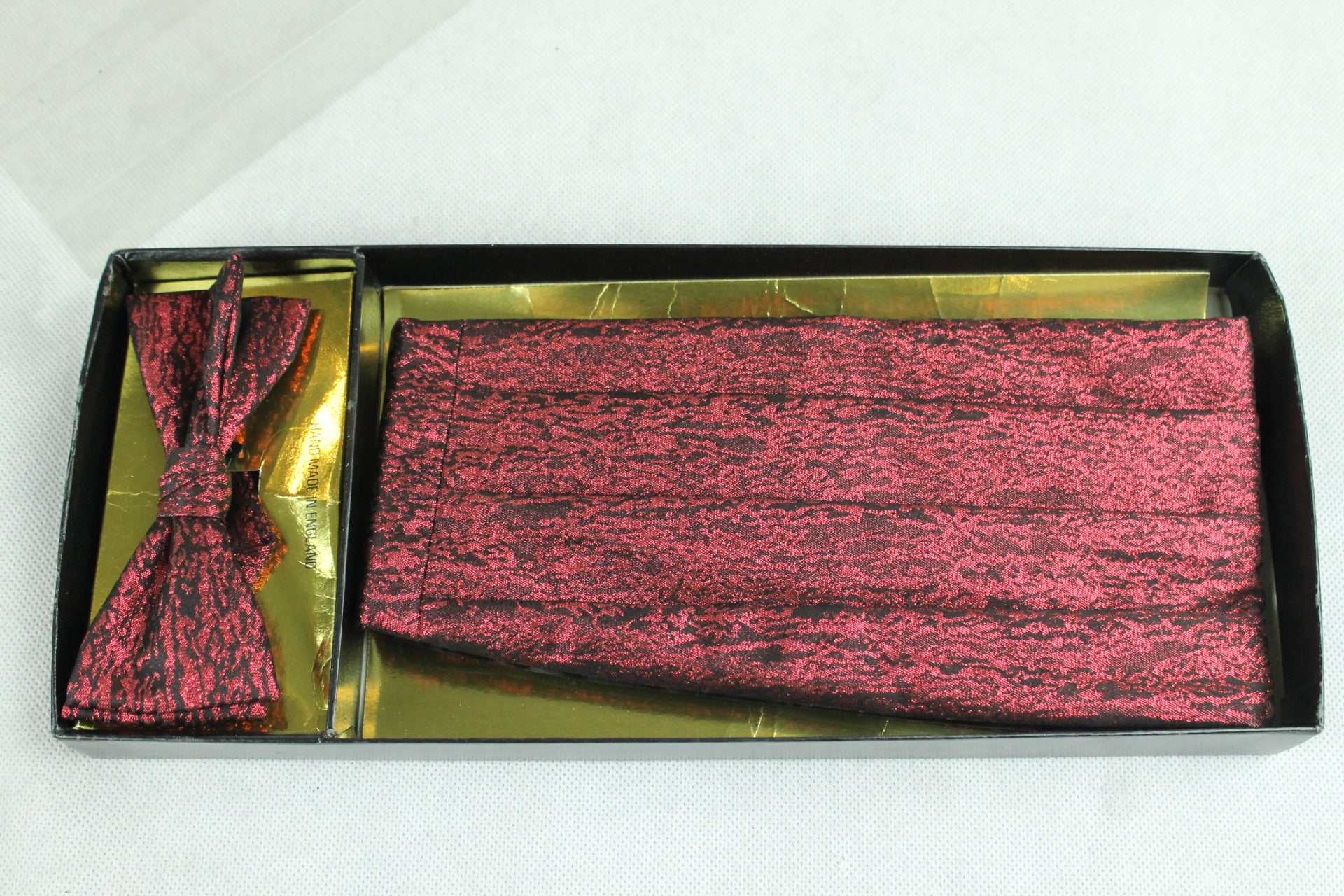 Vintage 1970s metallic cherry red cummerbund and bow tie set