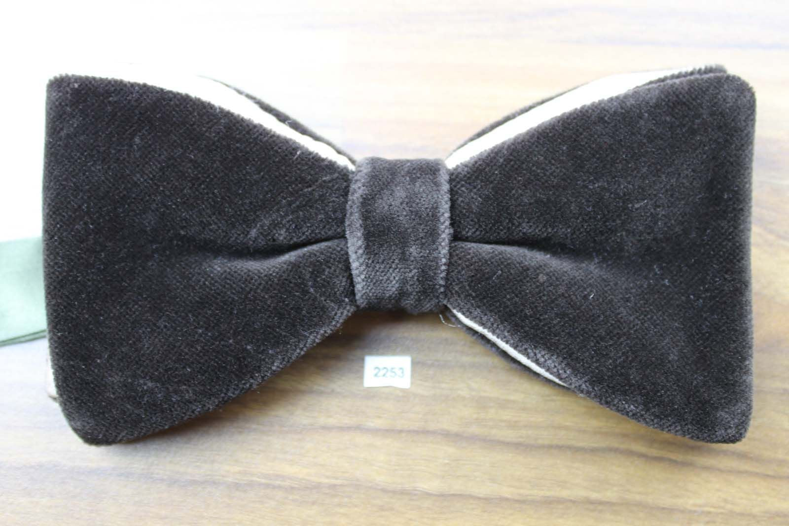 Vintage 1970s Pre Tied Dark Brown Velvet Satin Bow Tie Adjustable