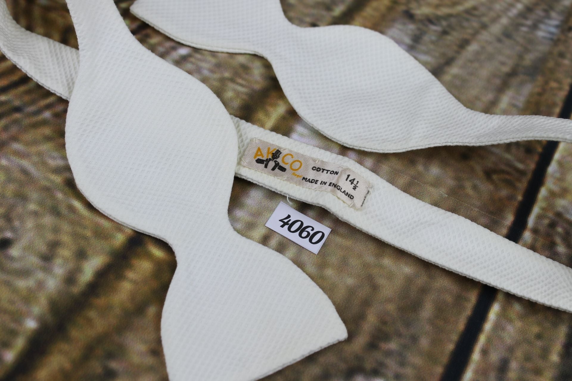 Vintage Akco 100% Textured Ivory Cotton Self Tie Adjustable Thistle Straight End Bow Tie