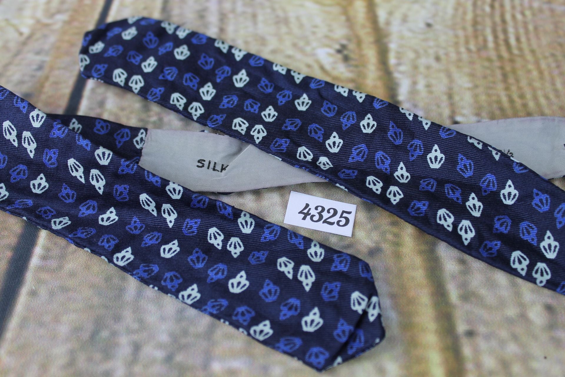 Vintage All Silk Blue Navy Pattern Self Tie Arrow End Skinny Bow Tie