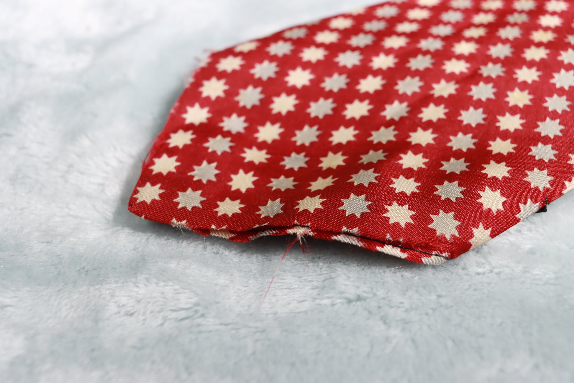 Good vintage condition. The tie has large edge wear holes around the knot area and has split along the bottom edge.