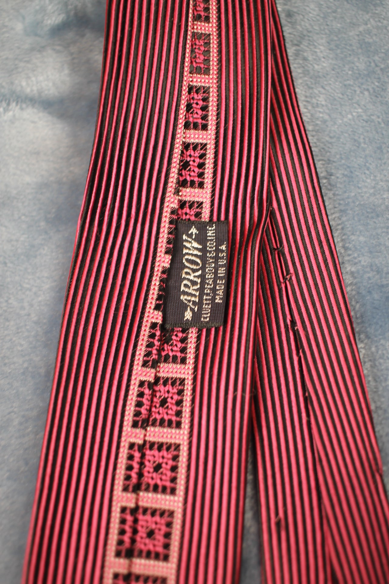 Vintage Arrow 1940s/50s pink black striped and square pattern skinny tie