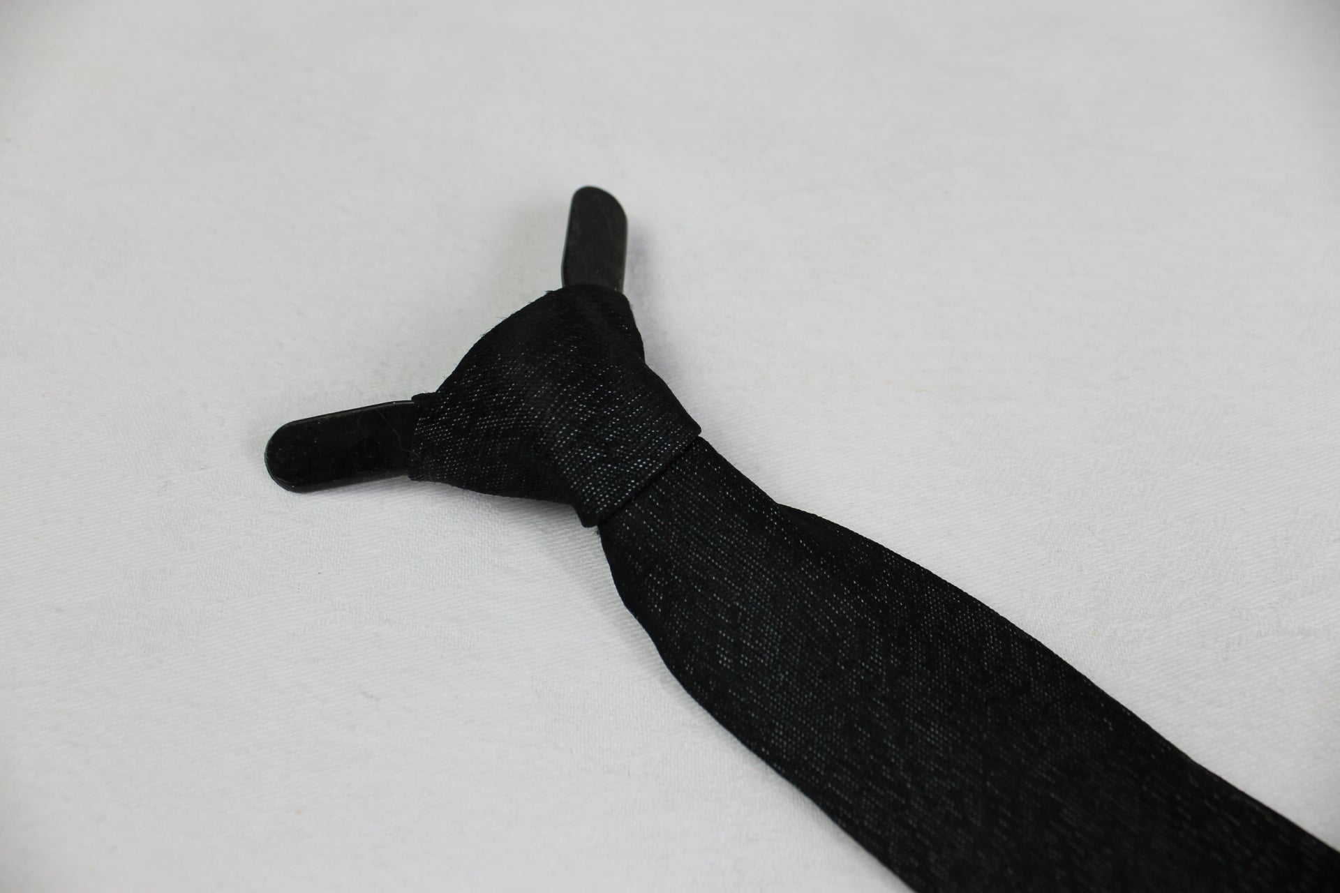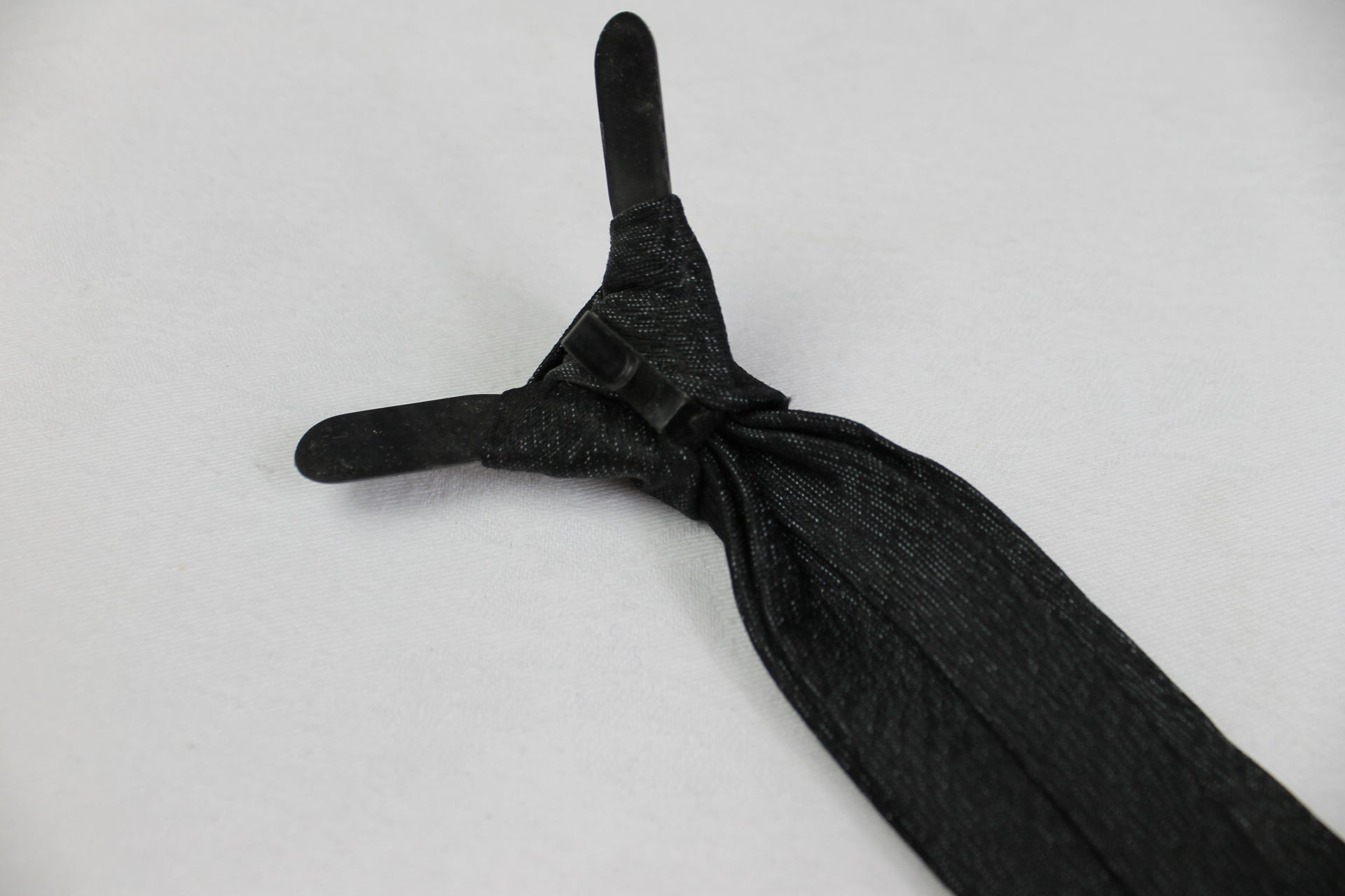 Vintage Black Grey Sharkskin Clip On Skinny Tie