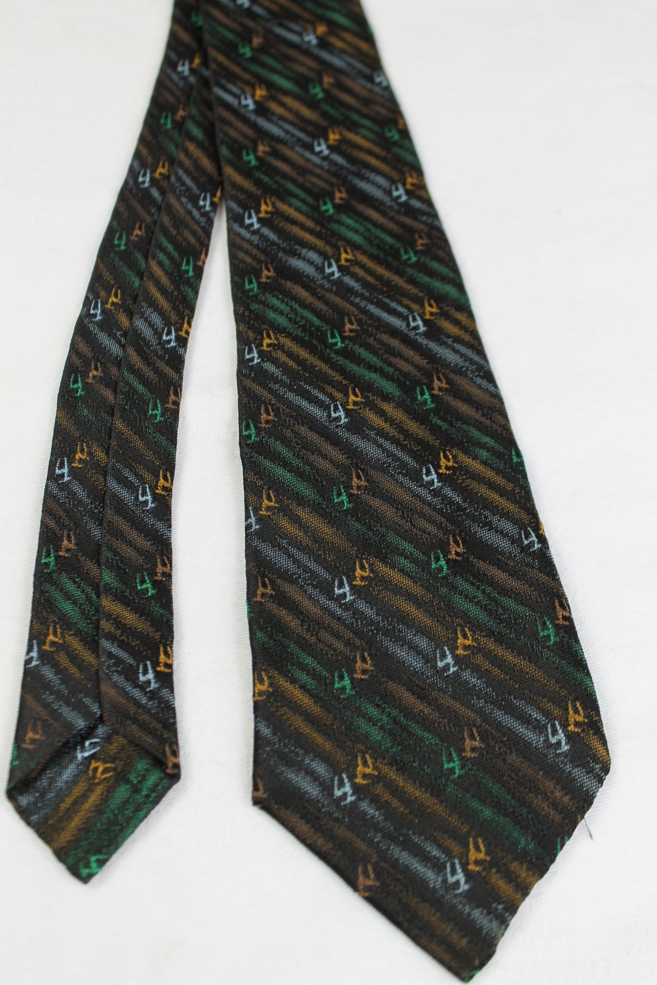 Vintage Black Orange Green Stripe Pattern Skinny Tie 1960s