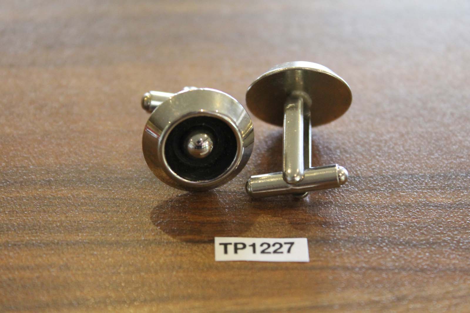 Vintage black silver metal round cuff links