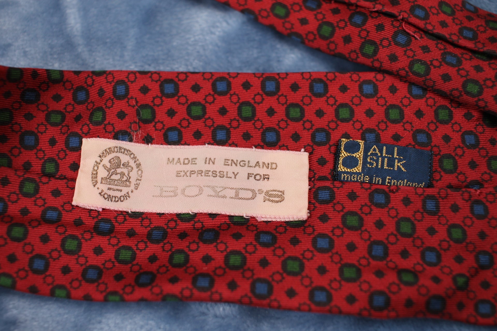 Vintage Boyds 1940s/50s all silk dark red blue green dot pattern tie