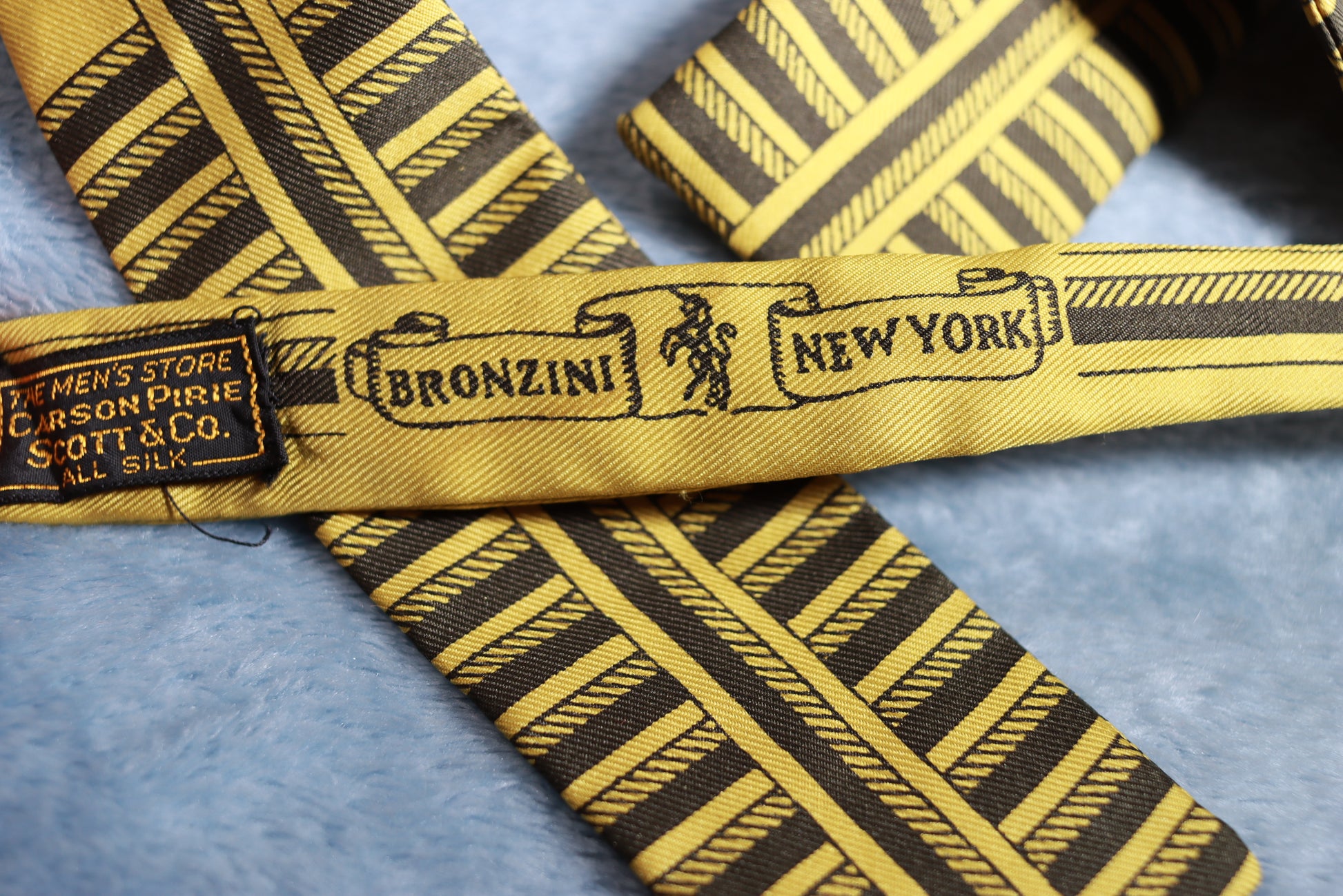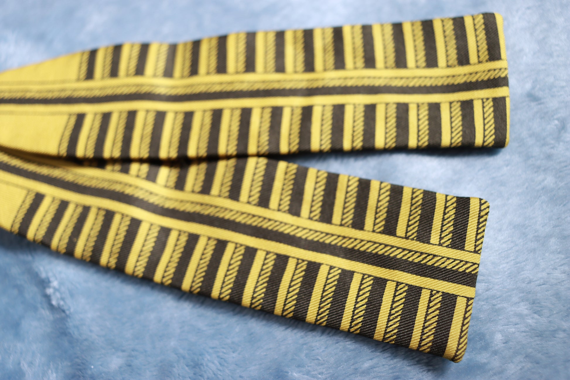 Vintage Bronzini Gold & Black Bars Silk Bow Tie