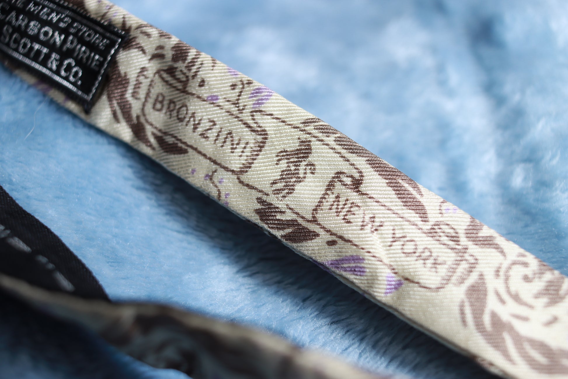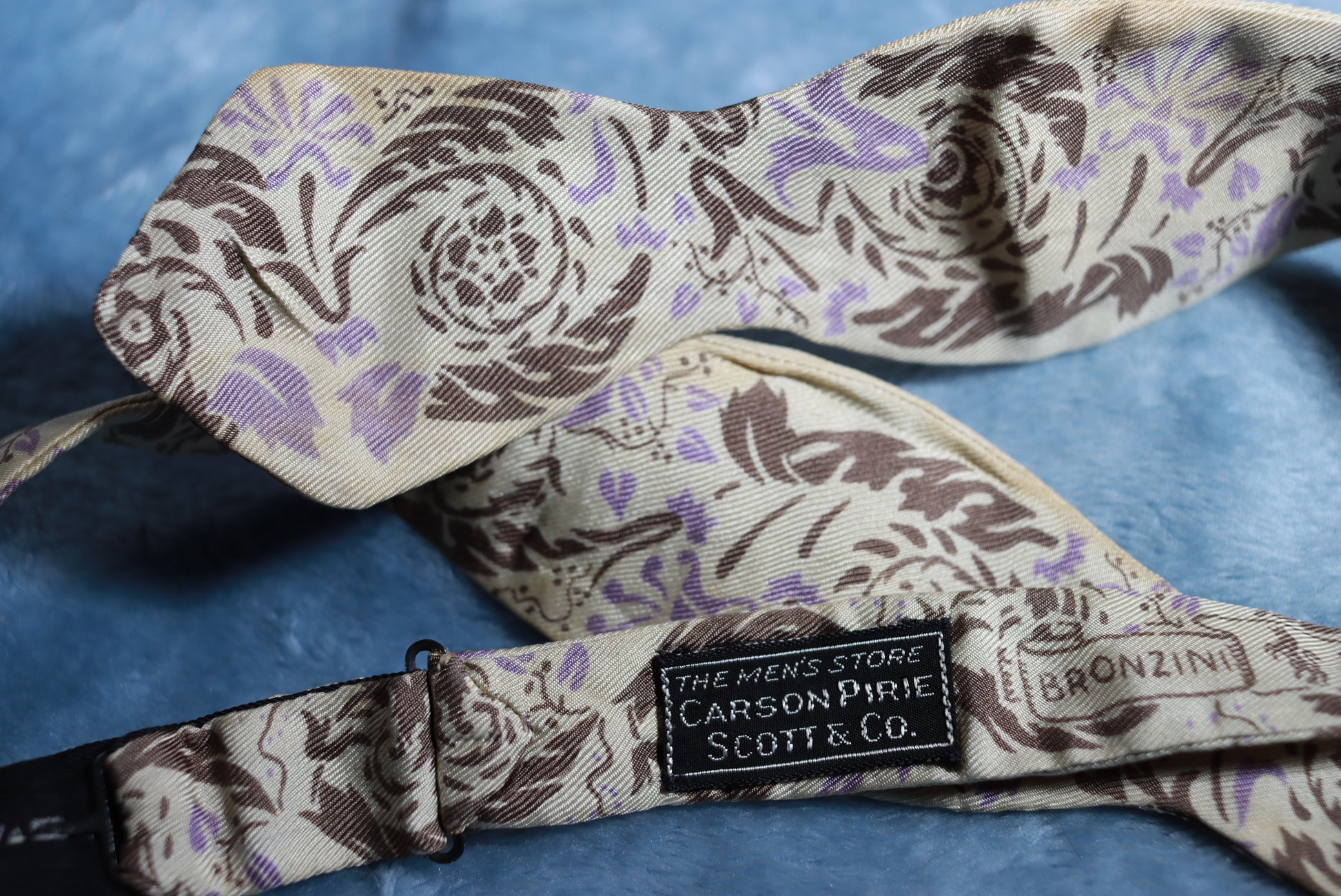 Vintage Bronzini Thistle Cream Pattern Bow Tie