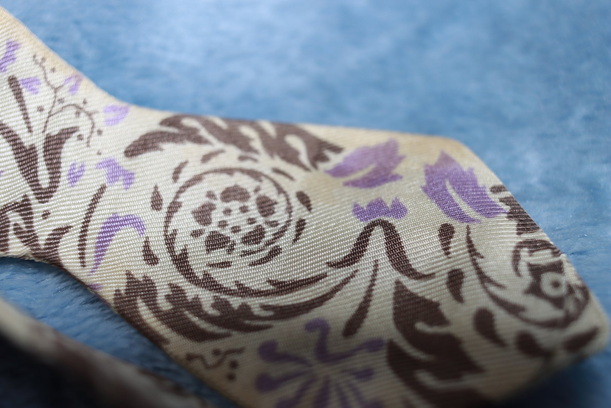 Very good vintage used condition. The edge of the tie is a little darkened from wear.