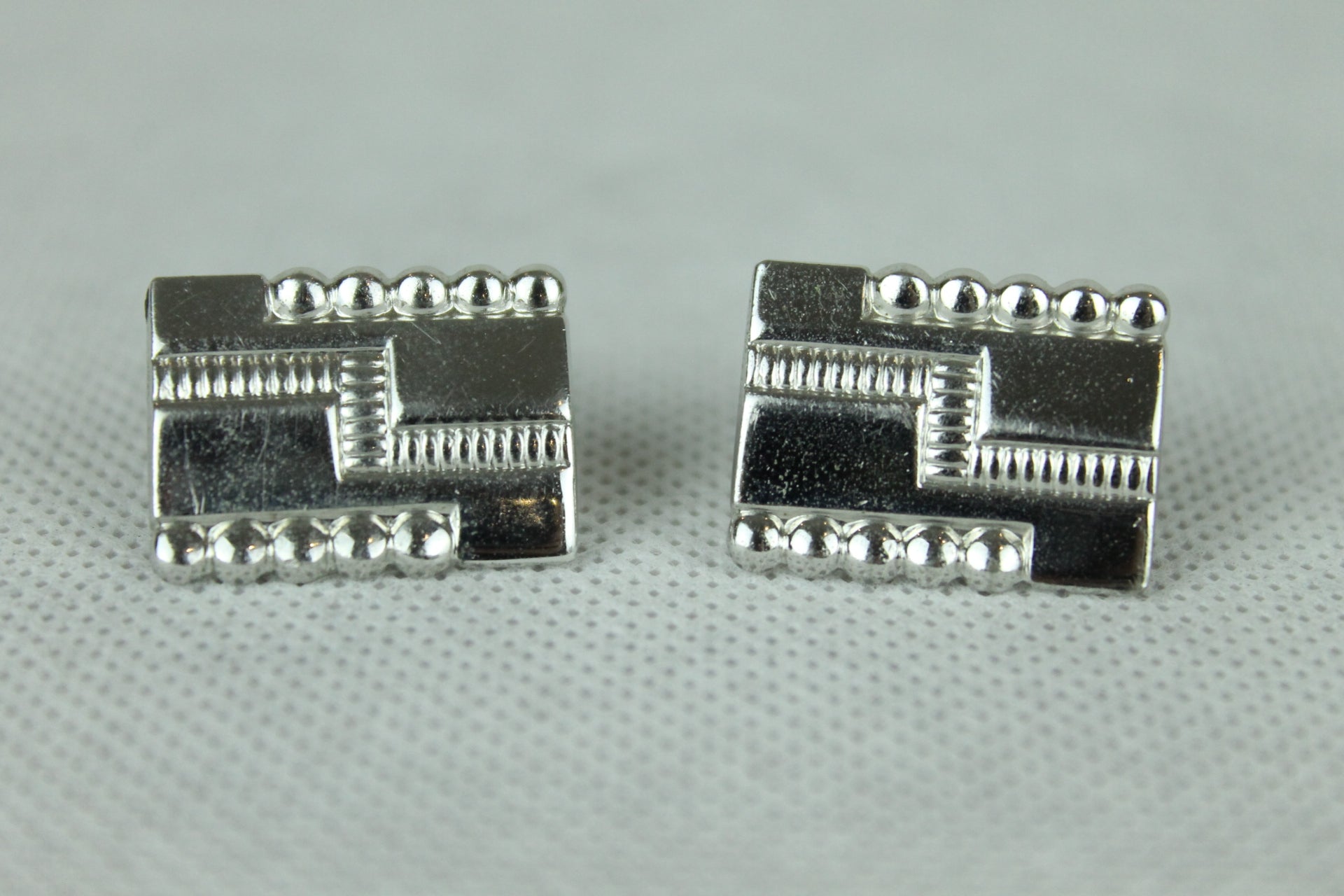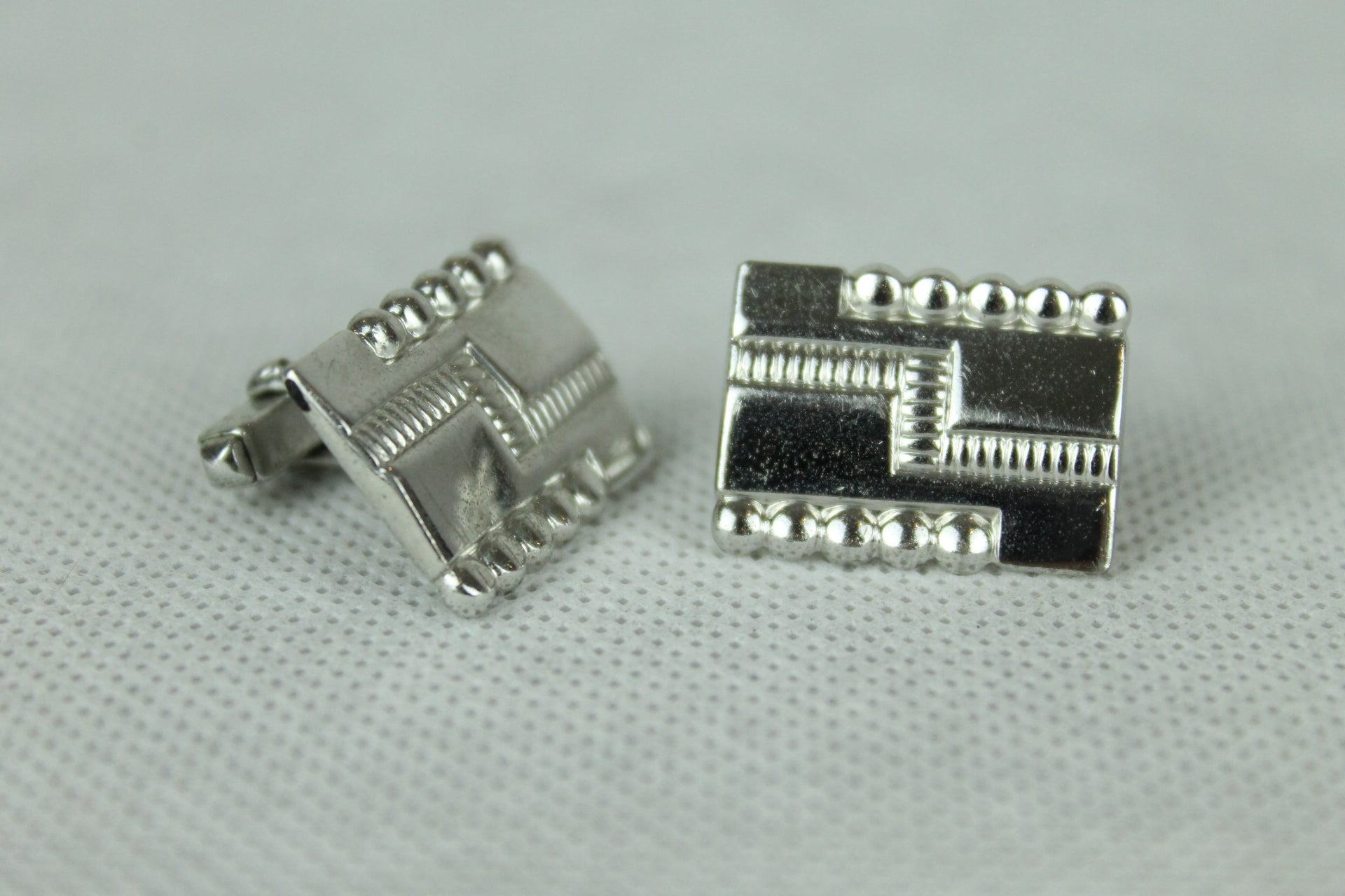 Vintage Chunky Silver Metal Oblong Cufflinks