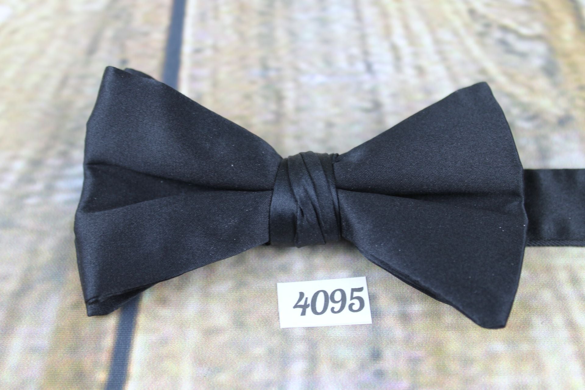 Vintage Classic Black Satin Slim Pre-tied Adjustable Bow Tie