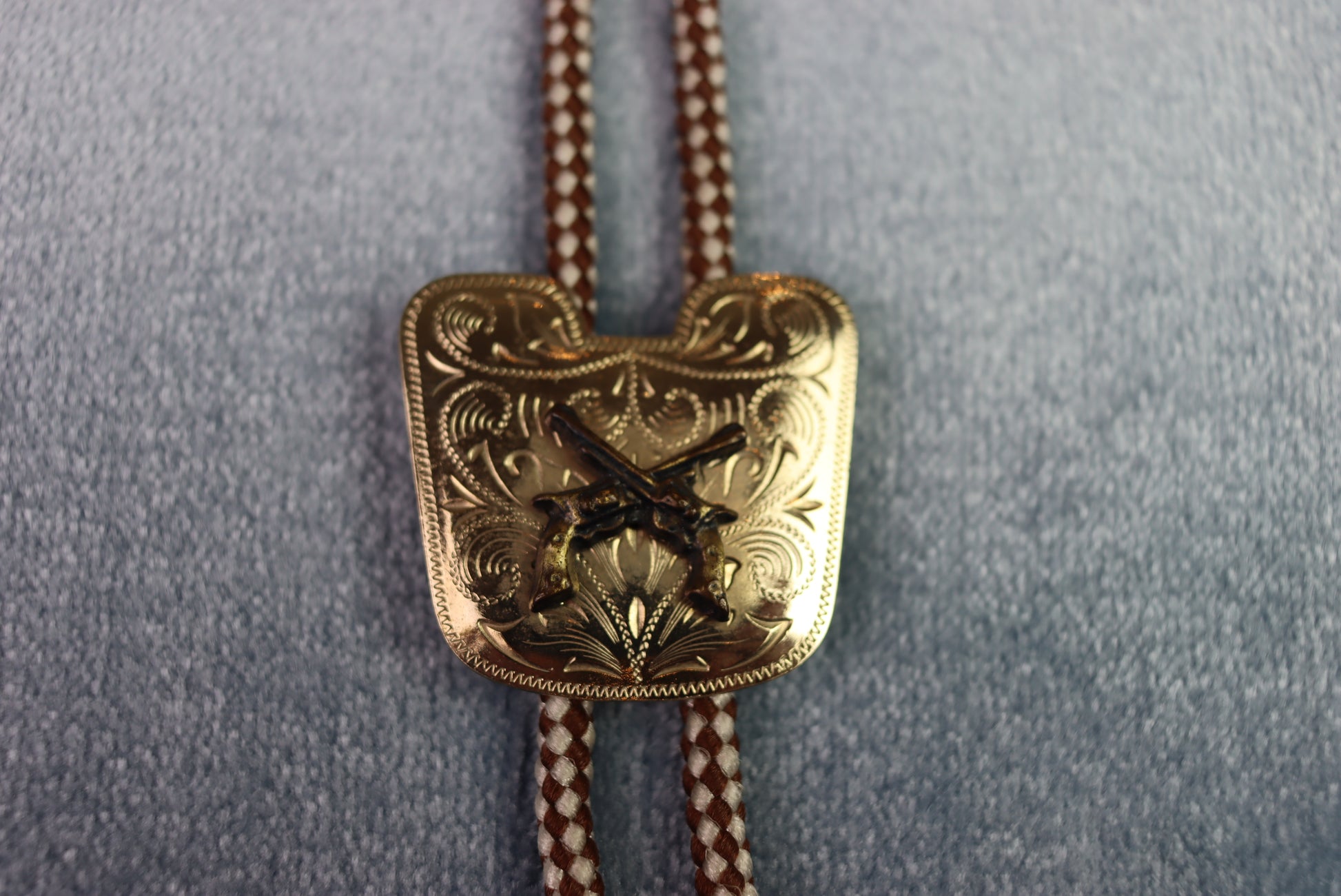 Brown & Cream woven cord (80cm total length approx), dark metal aiglets.