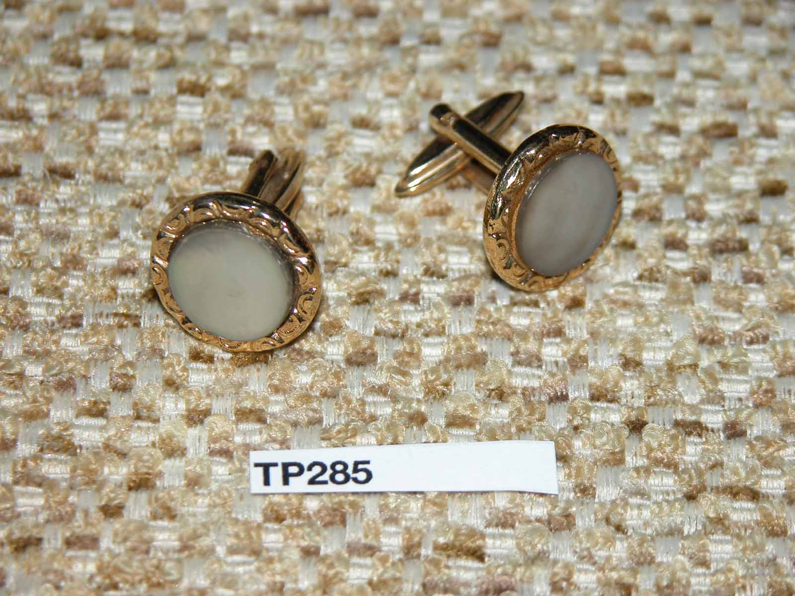 Vintage Cuff Links Gold Metal Grey Pearlised Glass Button Setting