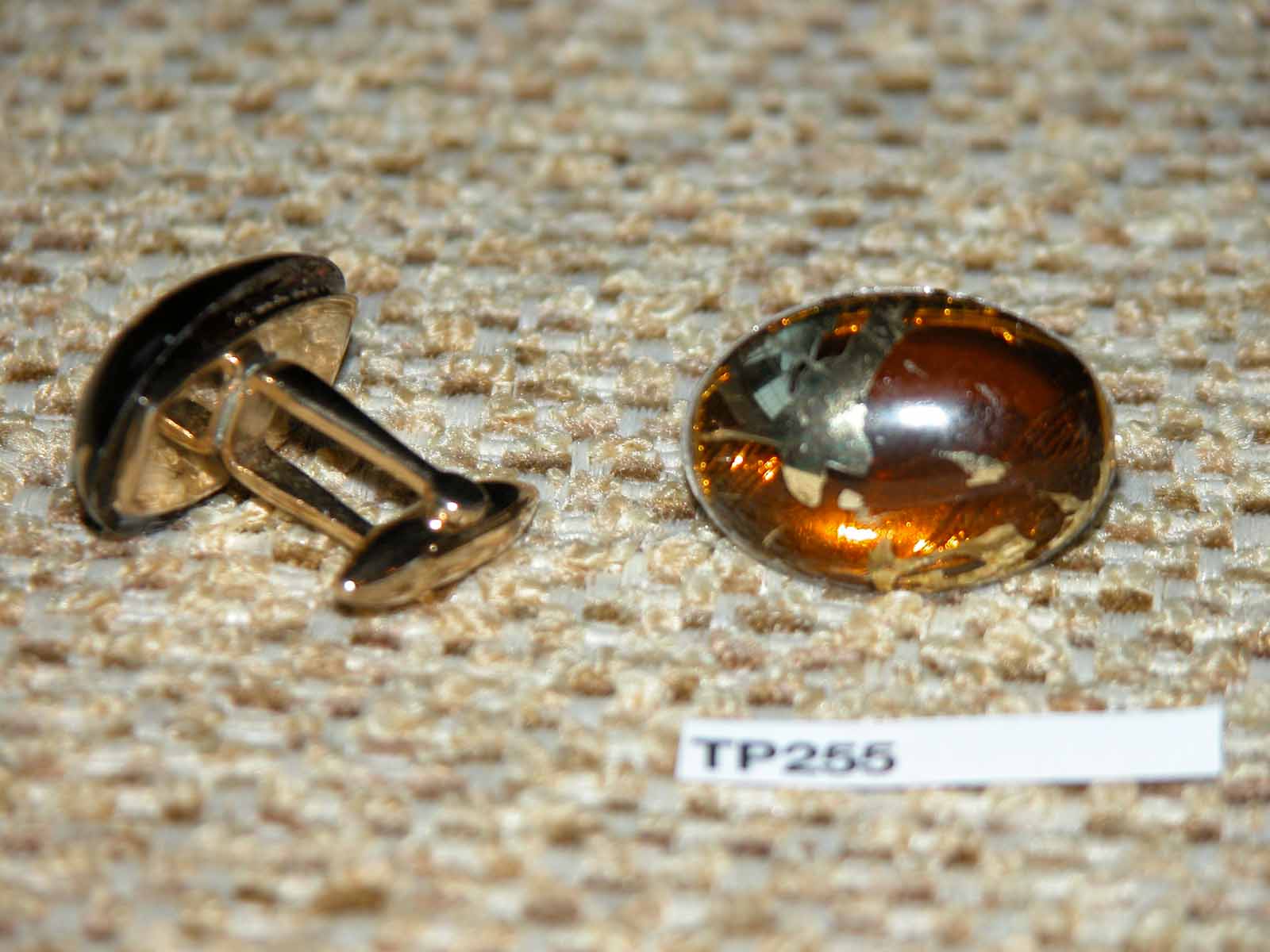 Vintage Cuff Links Gold Metal Large Brown Gold Foil Art Glass Stones