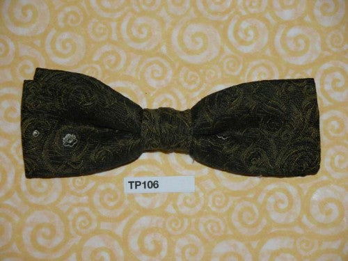 Vintage dark olive random white flower woven pattern clip on bow tie