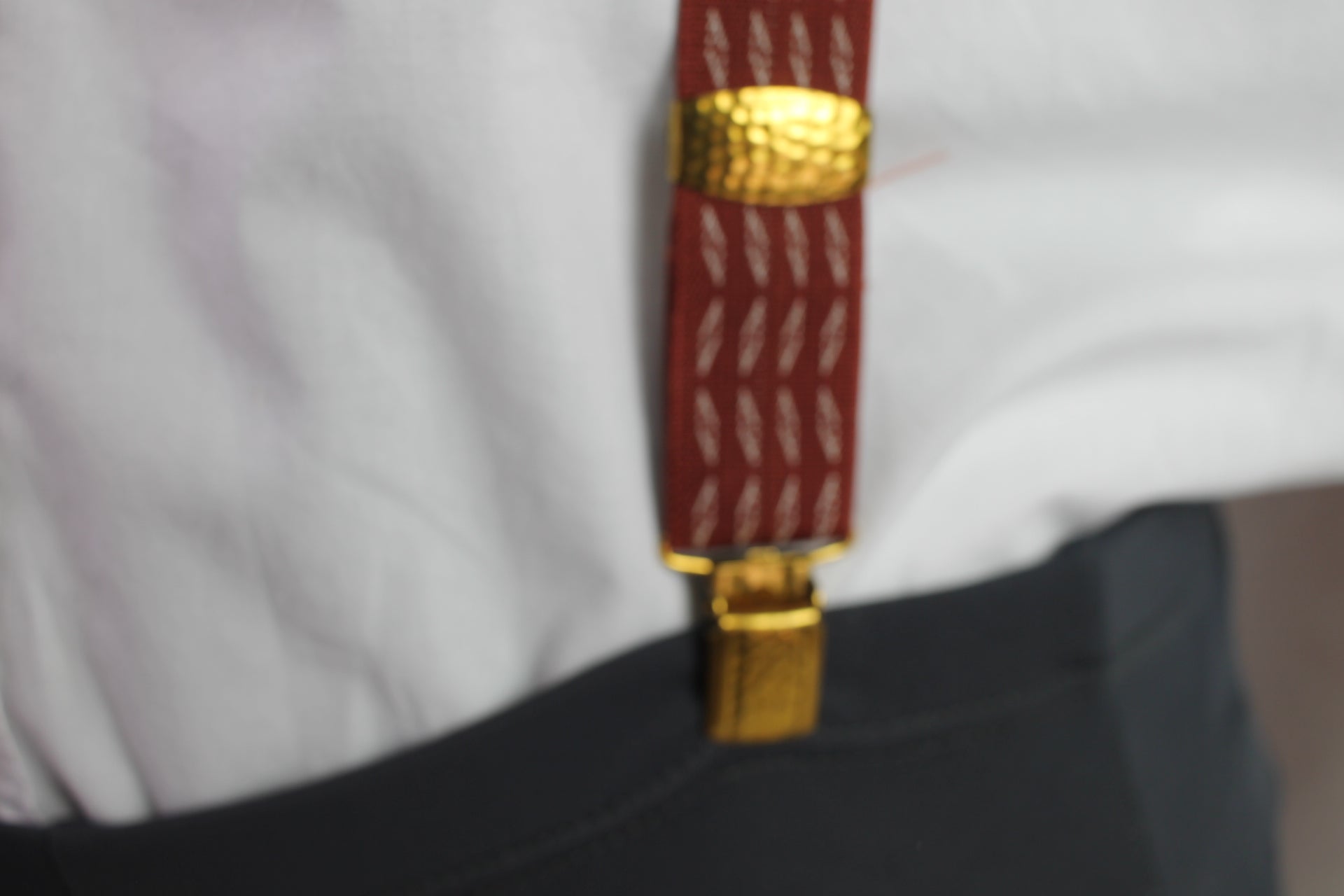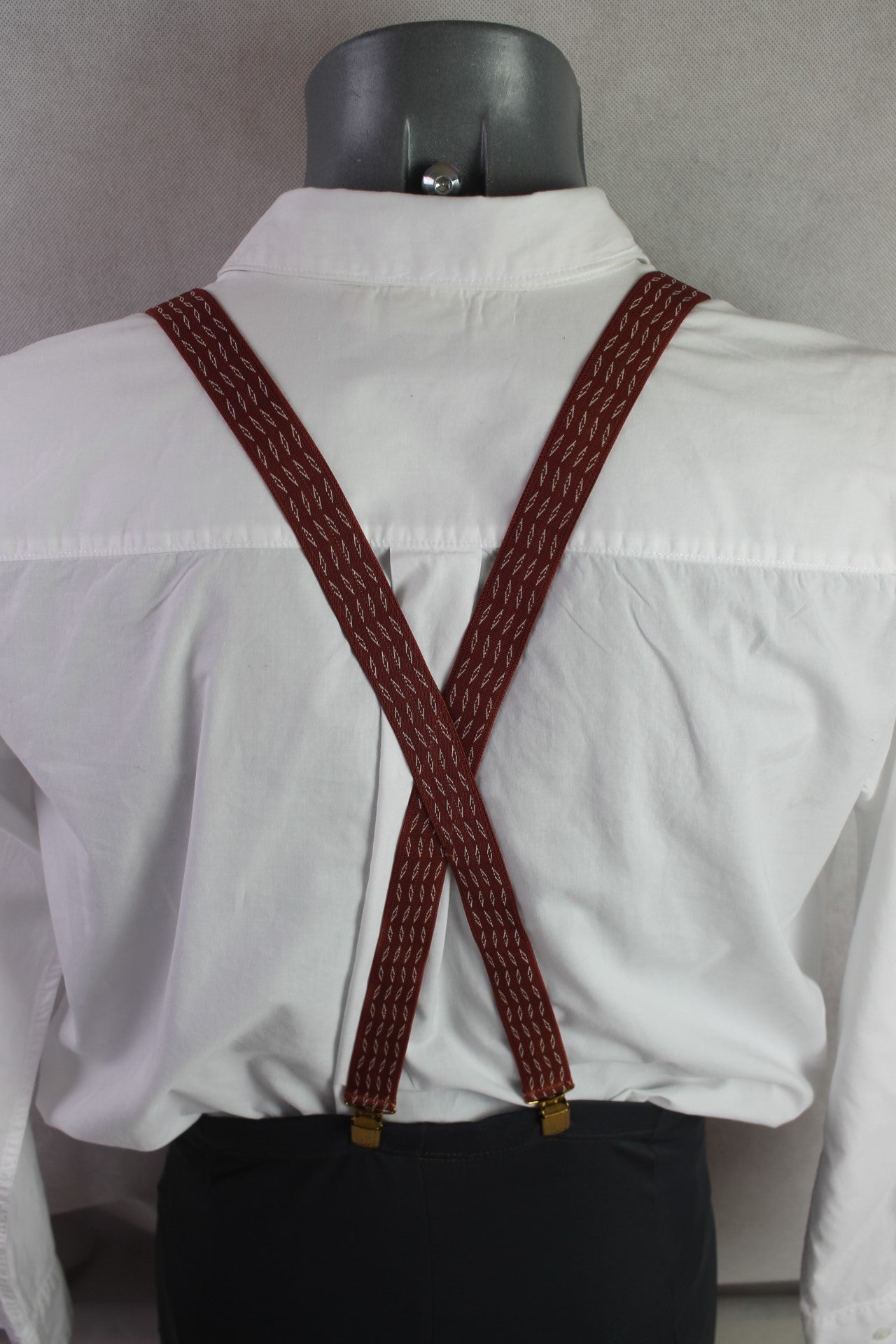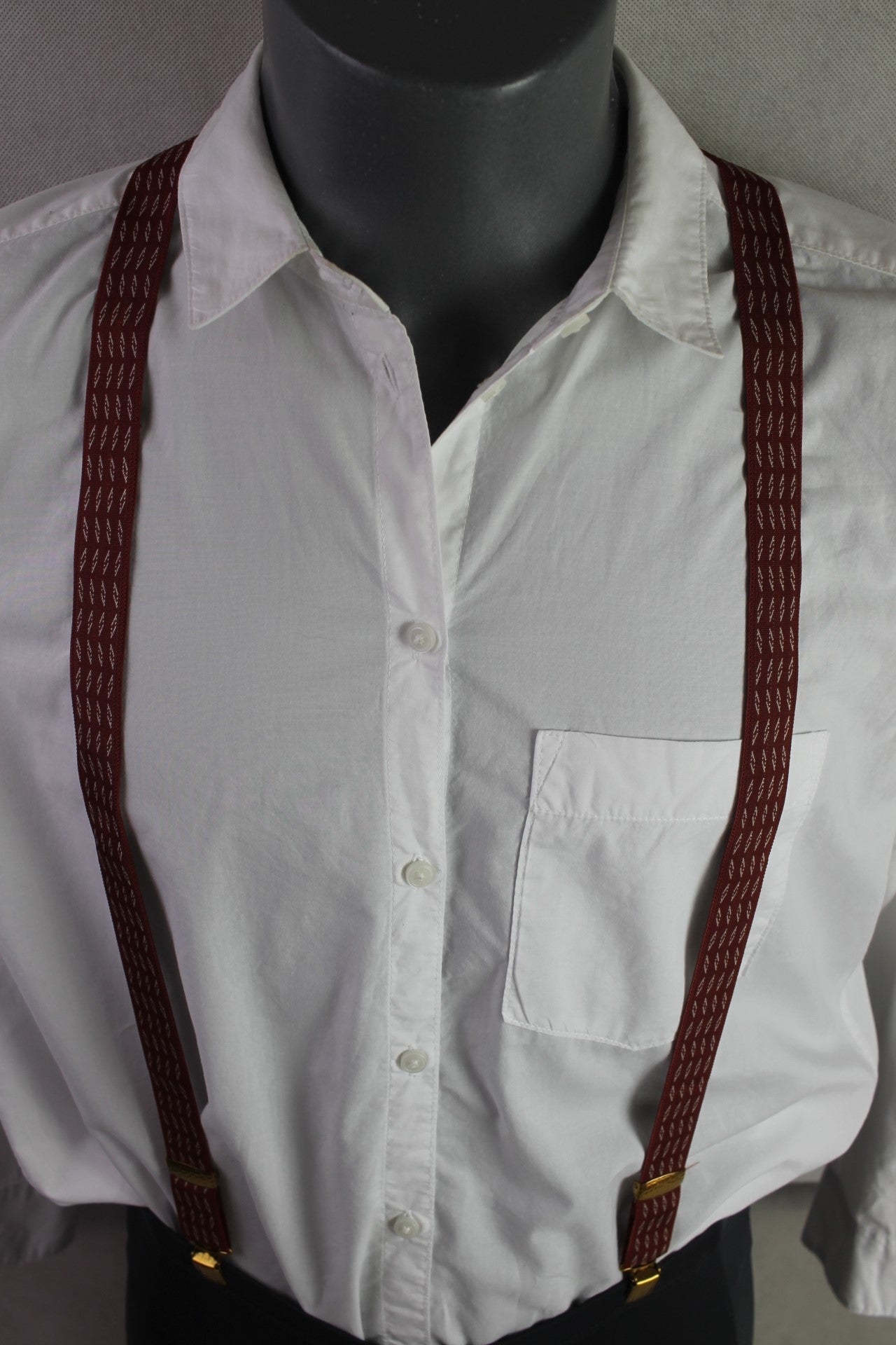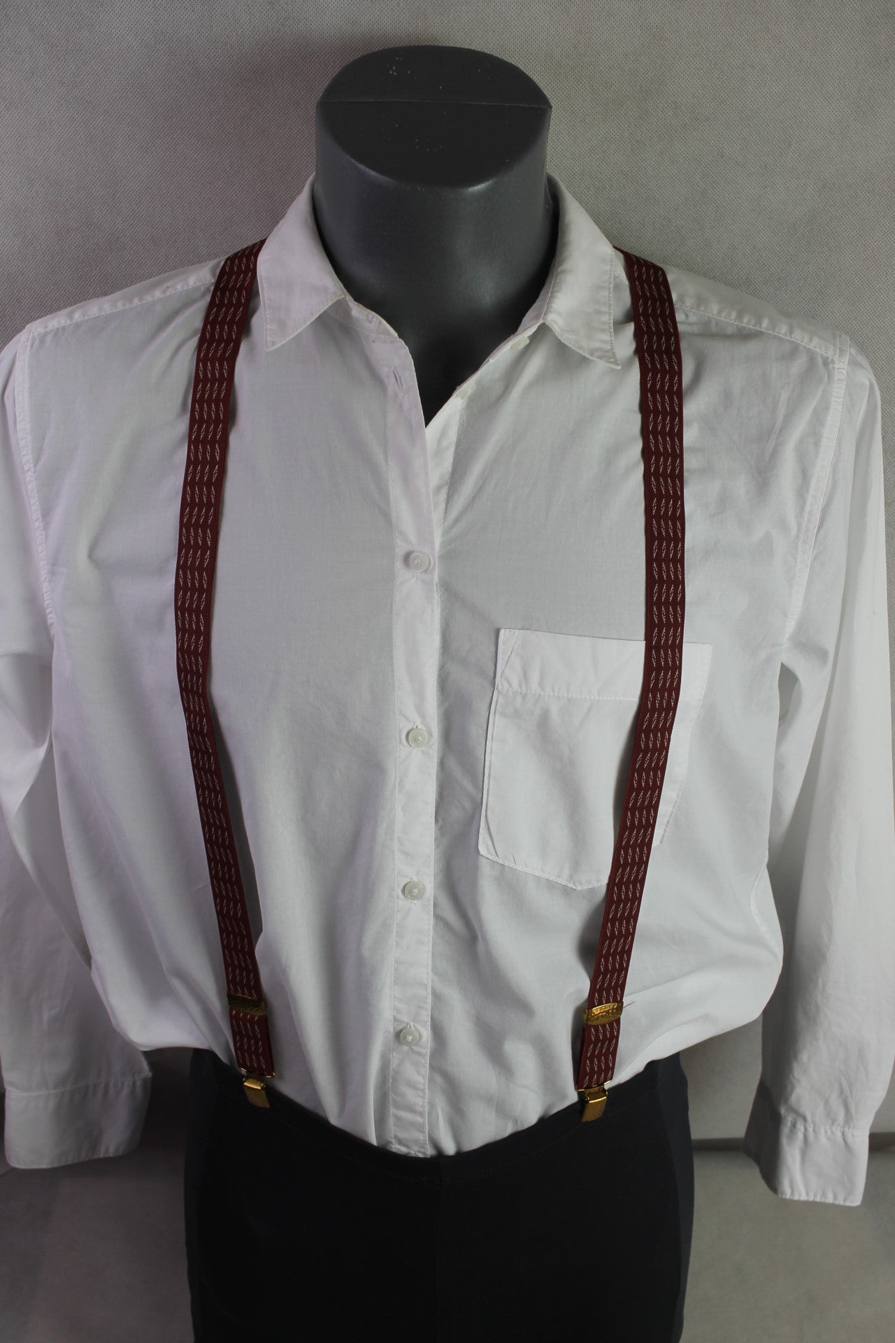 Vintage dark red white diamond pattern elasticated braces gold metal clips adjustable