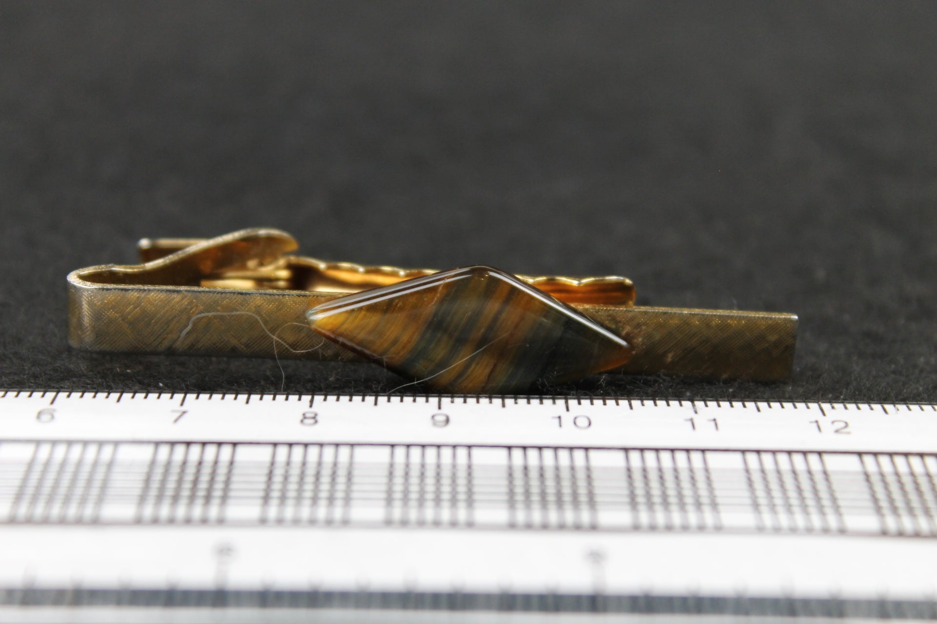 Vintage Diamond Tiger's Eye Stone Tie Clip