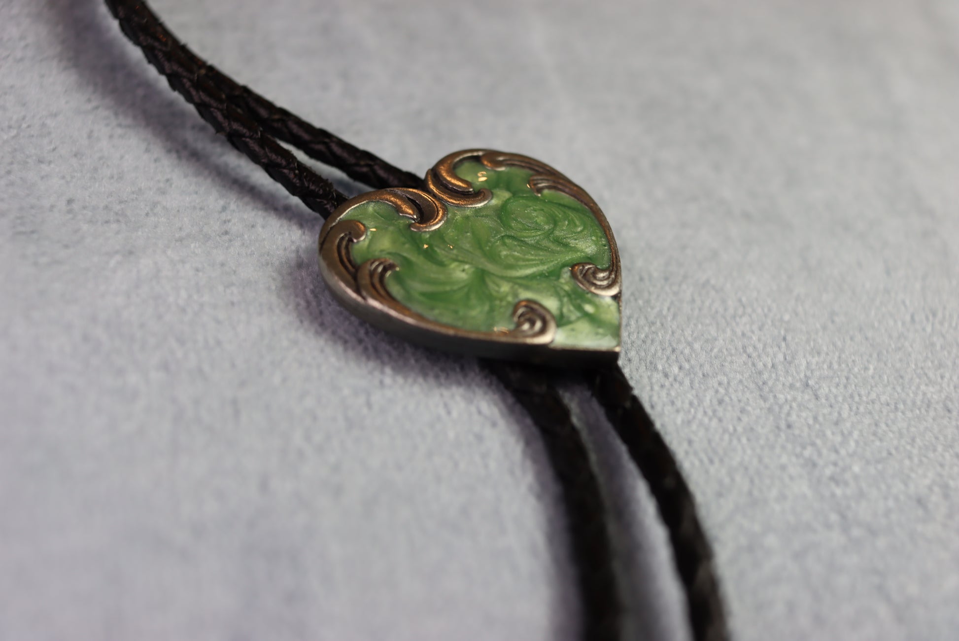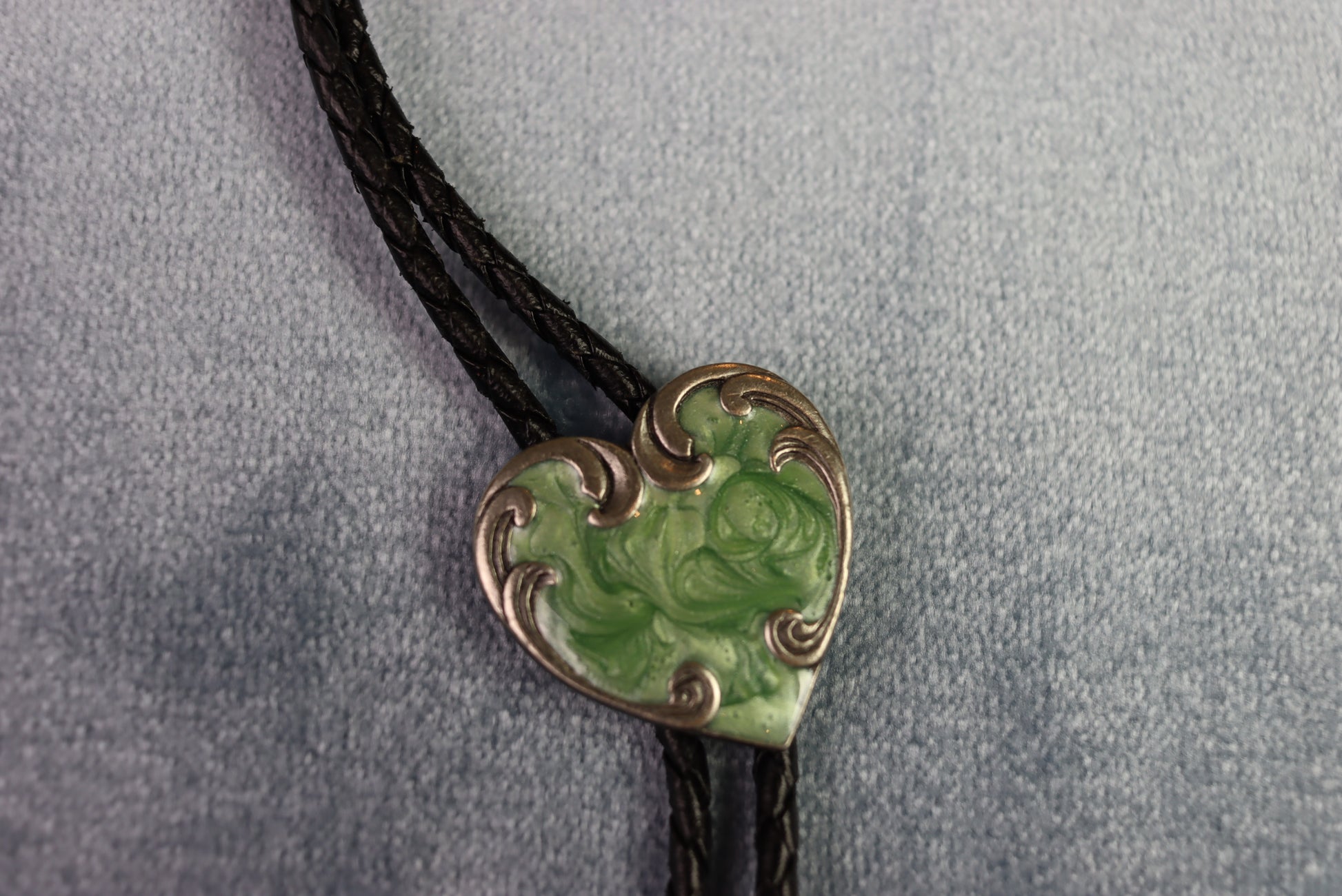 Vintage Enamelled Heart Slide Bolo Western Tie