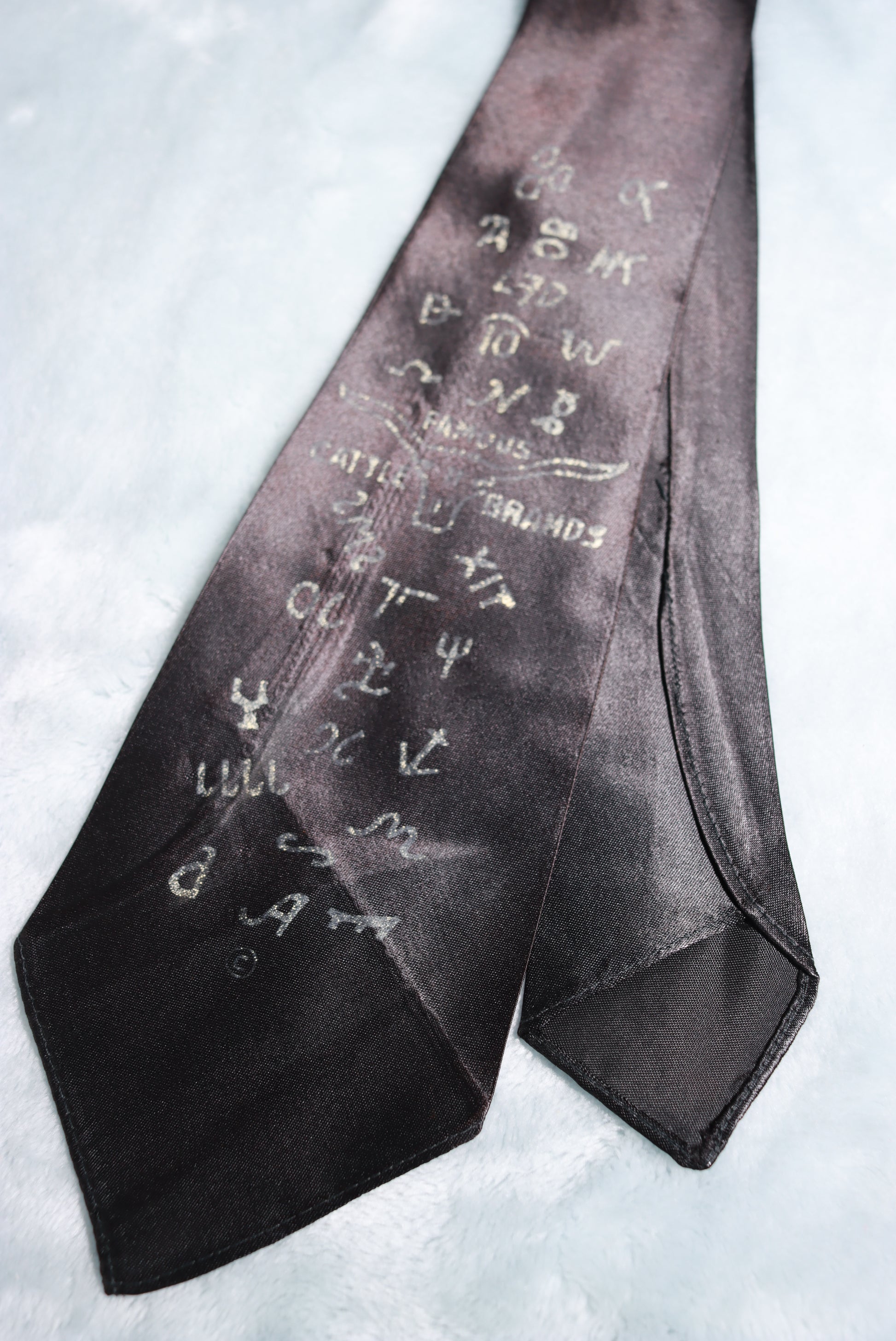 Vintage Famous Cattle Brands Black Satin Tie