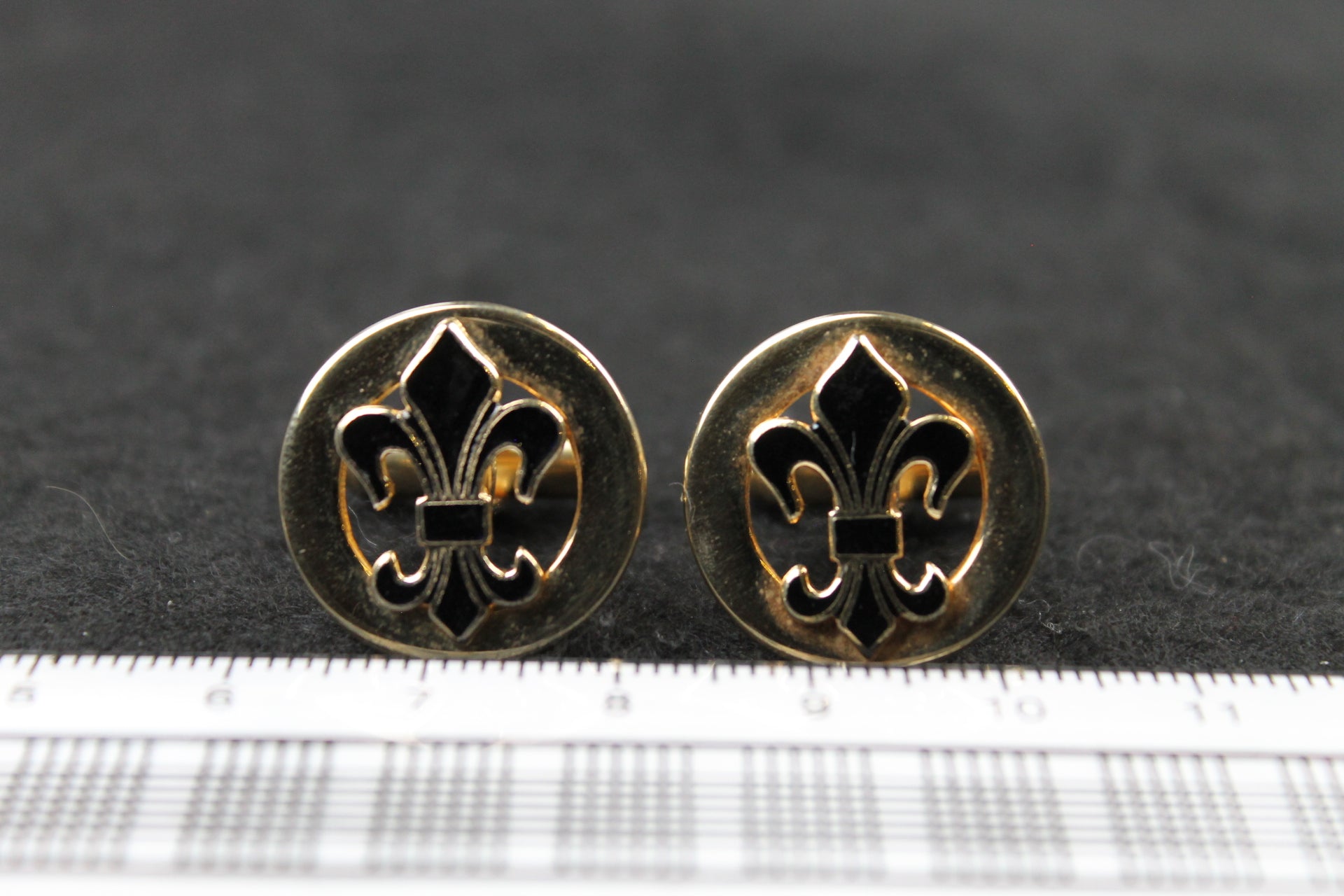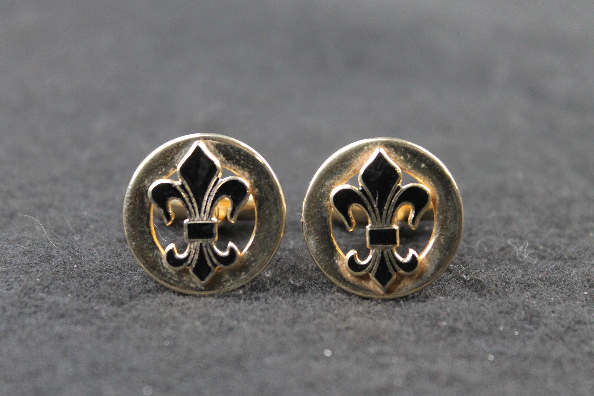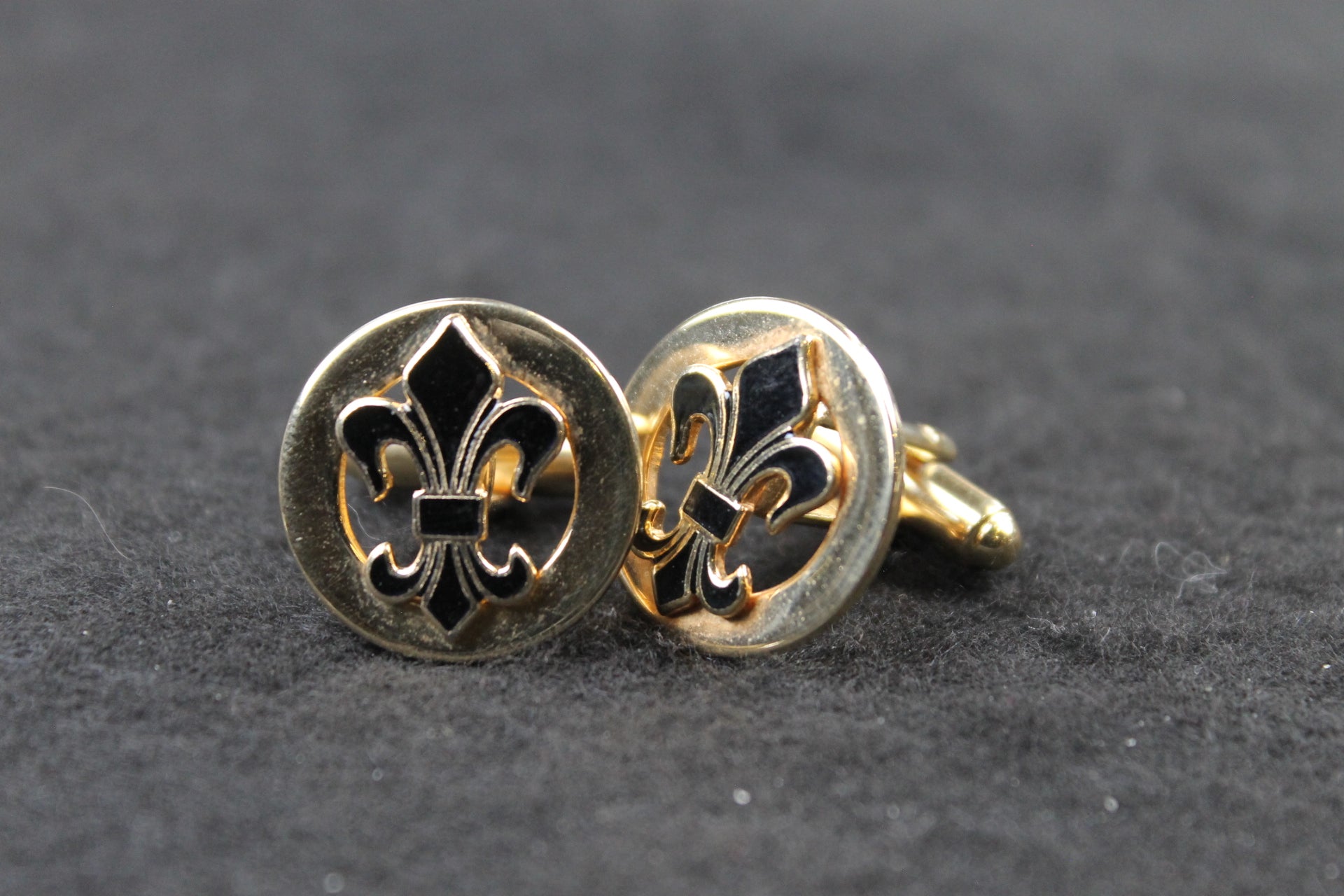 Vintage Fleur de Lys Cufflinks Gold Metal and Enamel