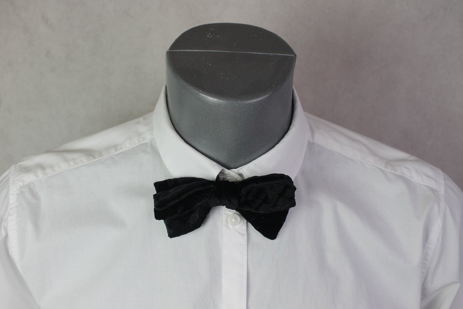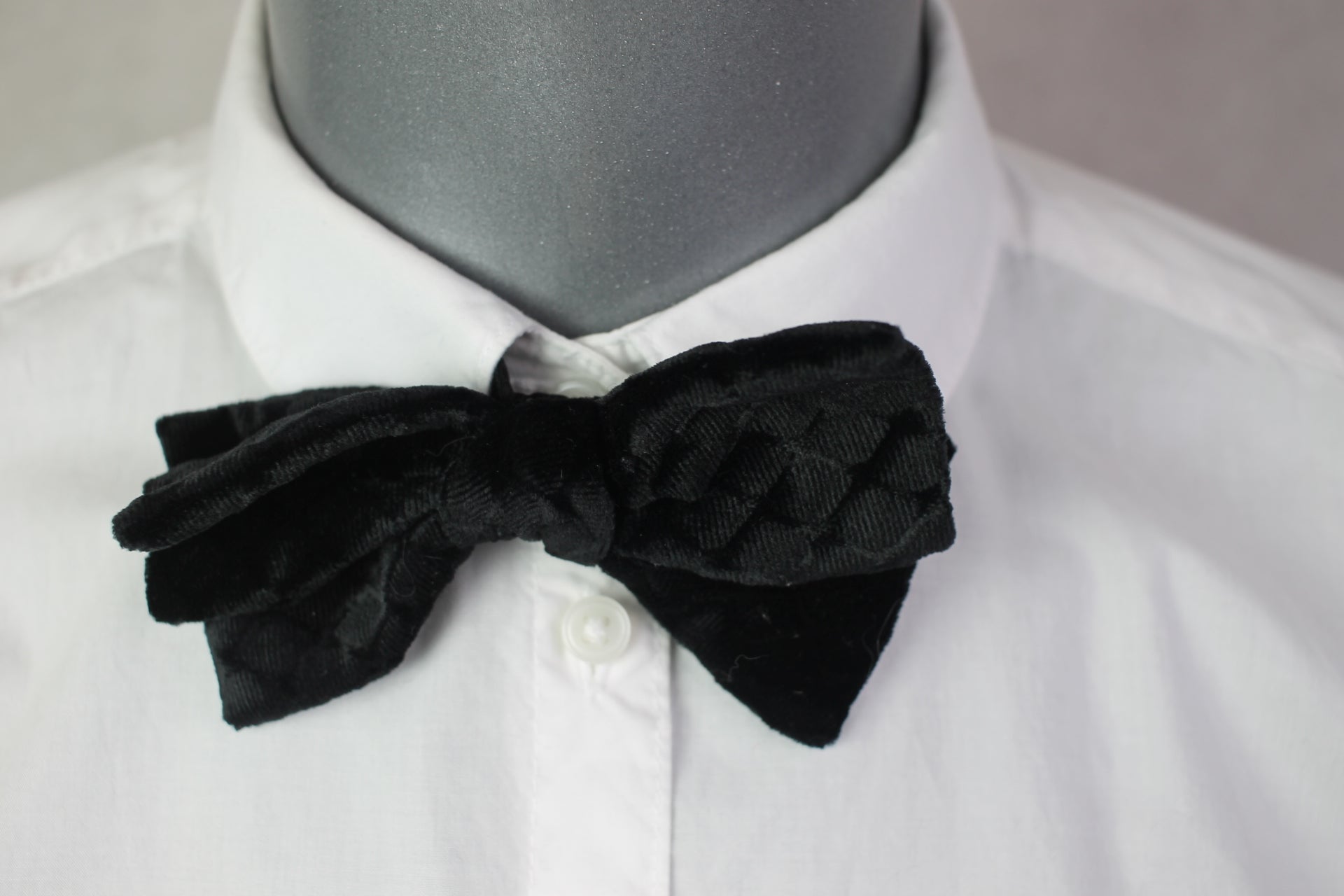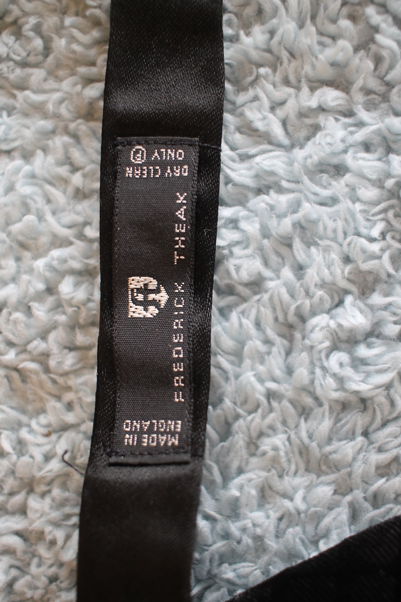 Vintage Frederick Theak pre-tied black velvet check pattern bow tie adjustable