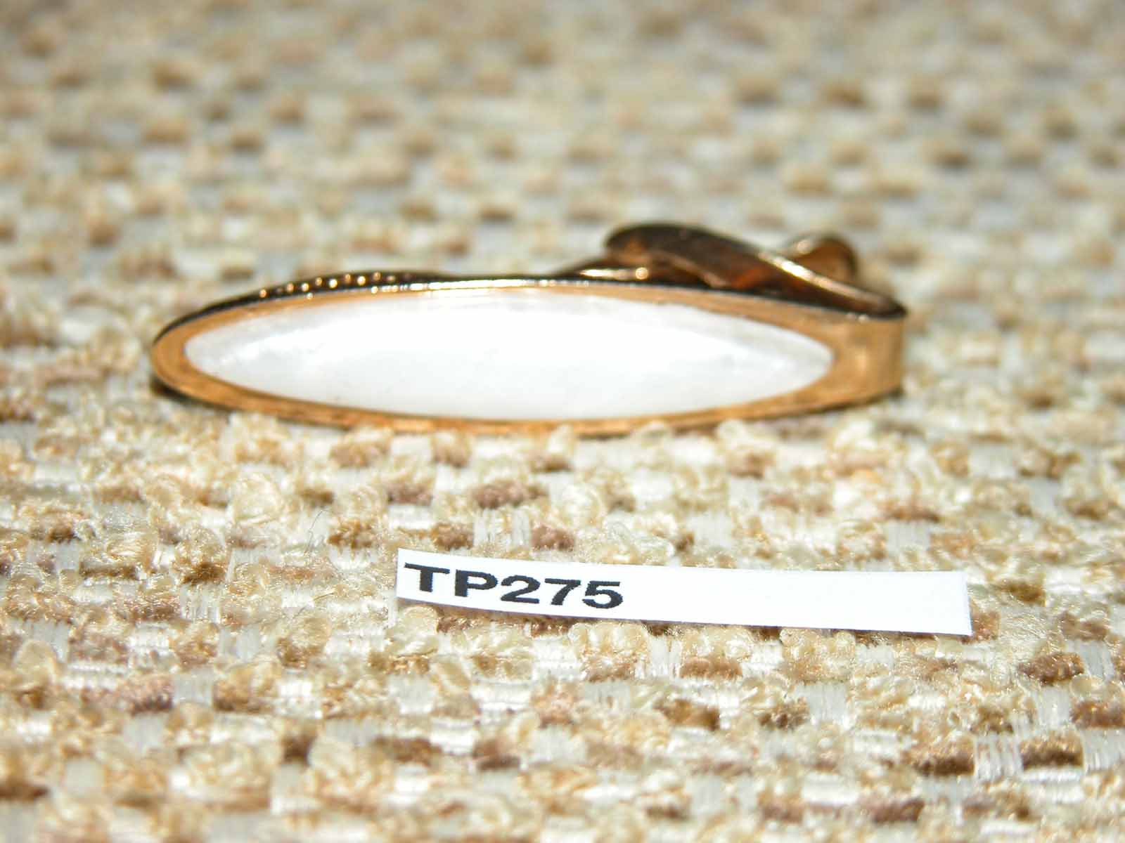Vintage Gold Metal Tie Clip White Pearlised Lucite