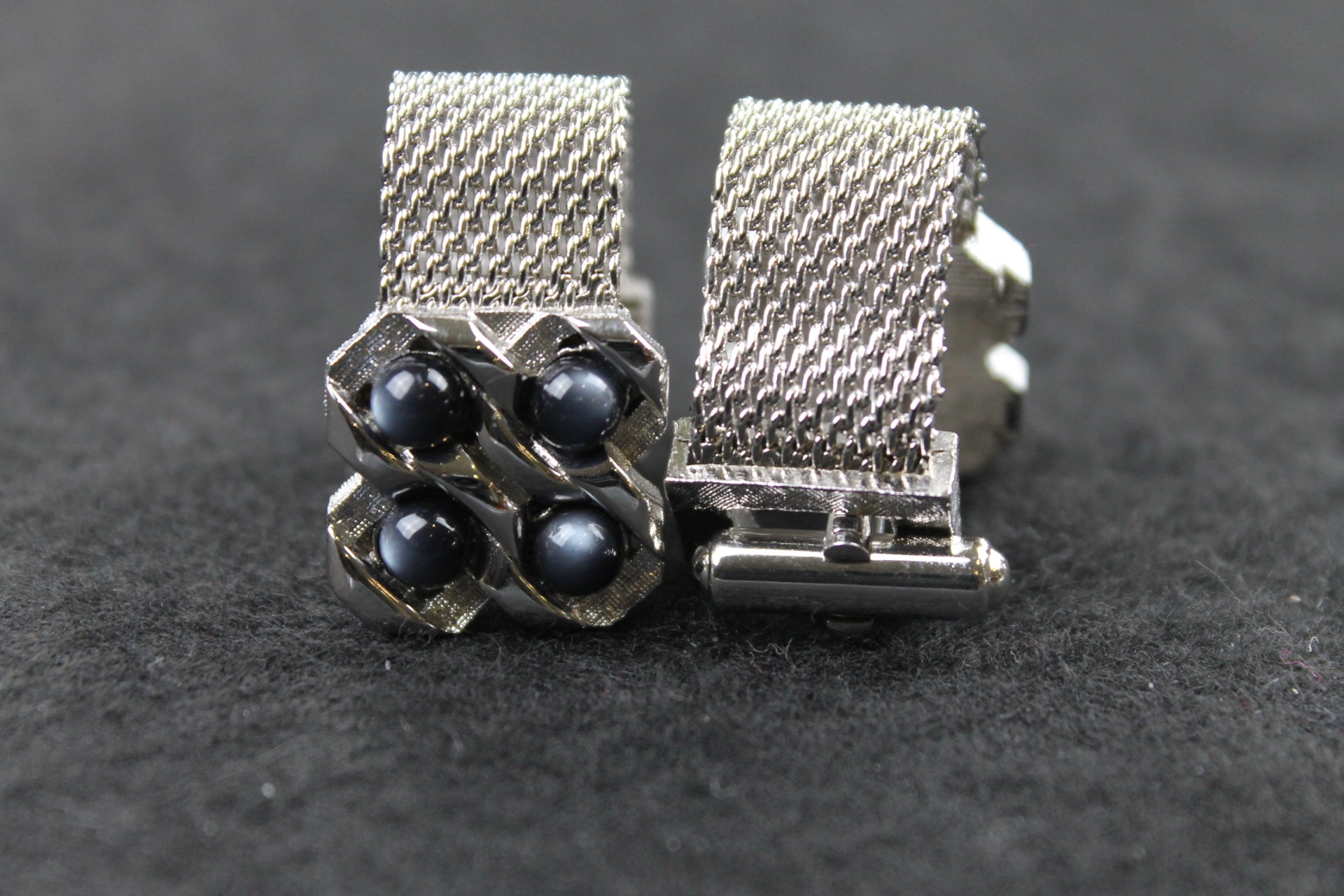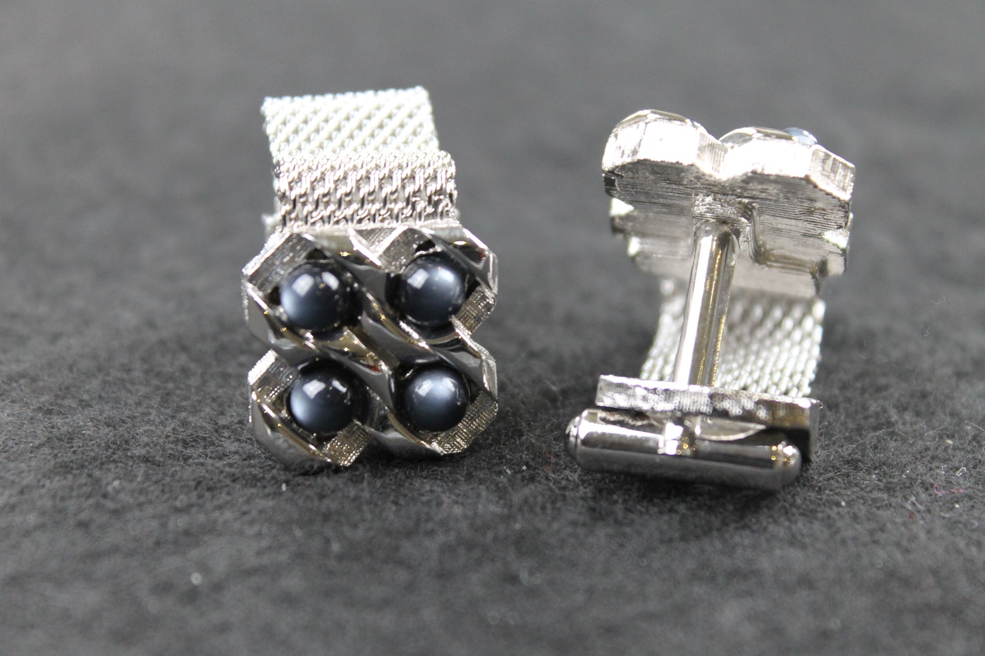 Vintage Grey Faux Pearl Wrap Around Silver Metal Cufflinks