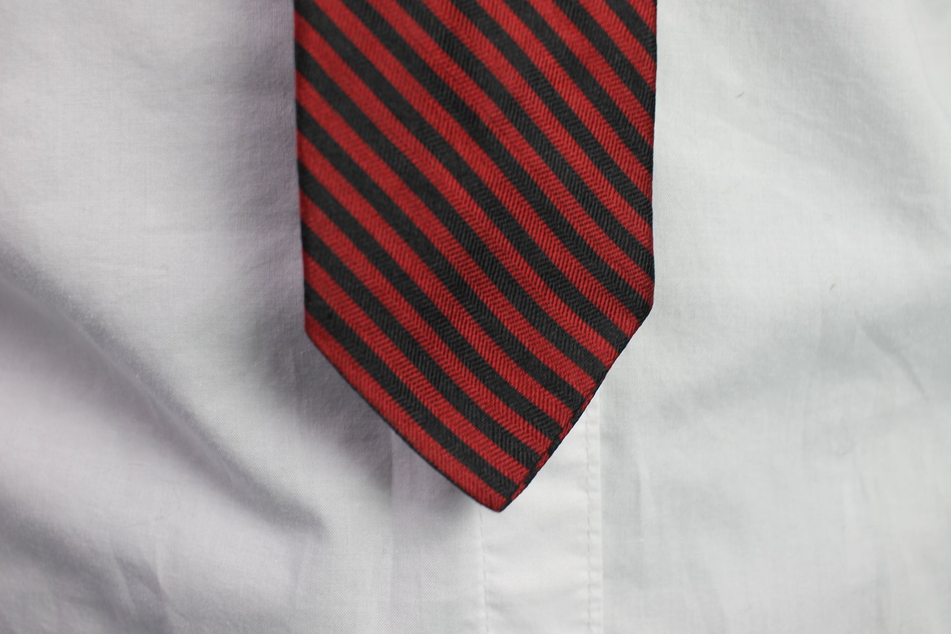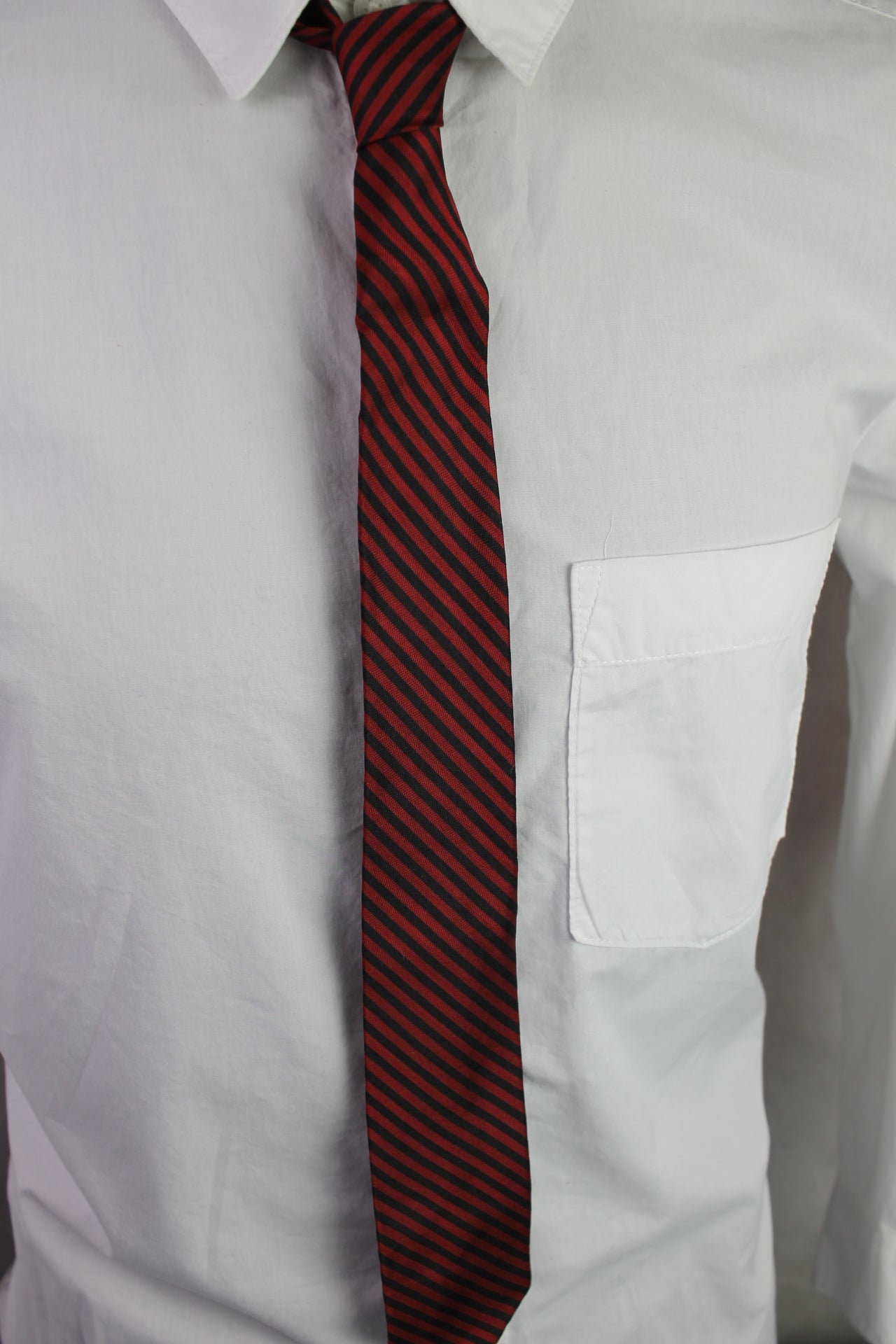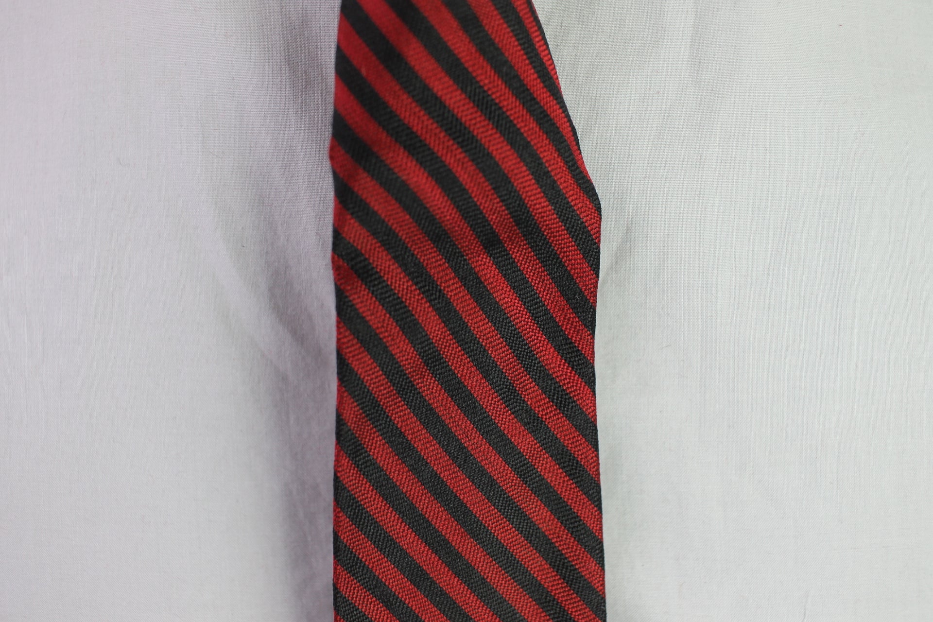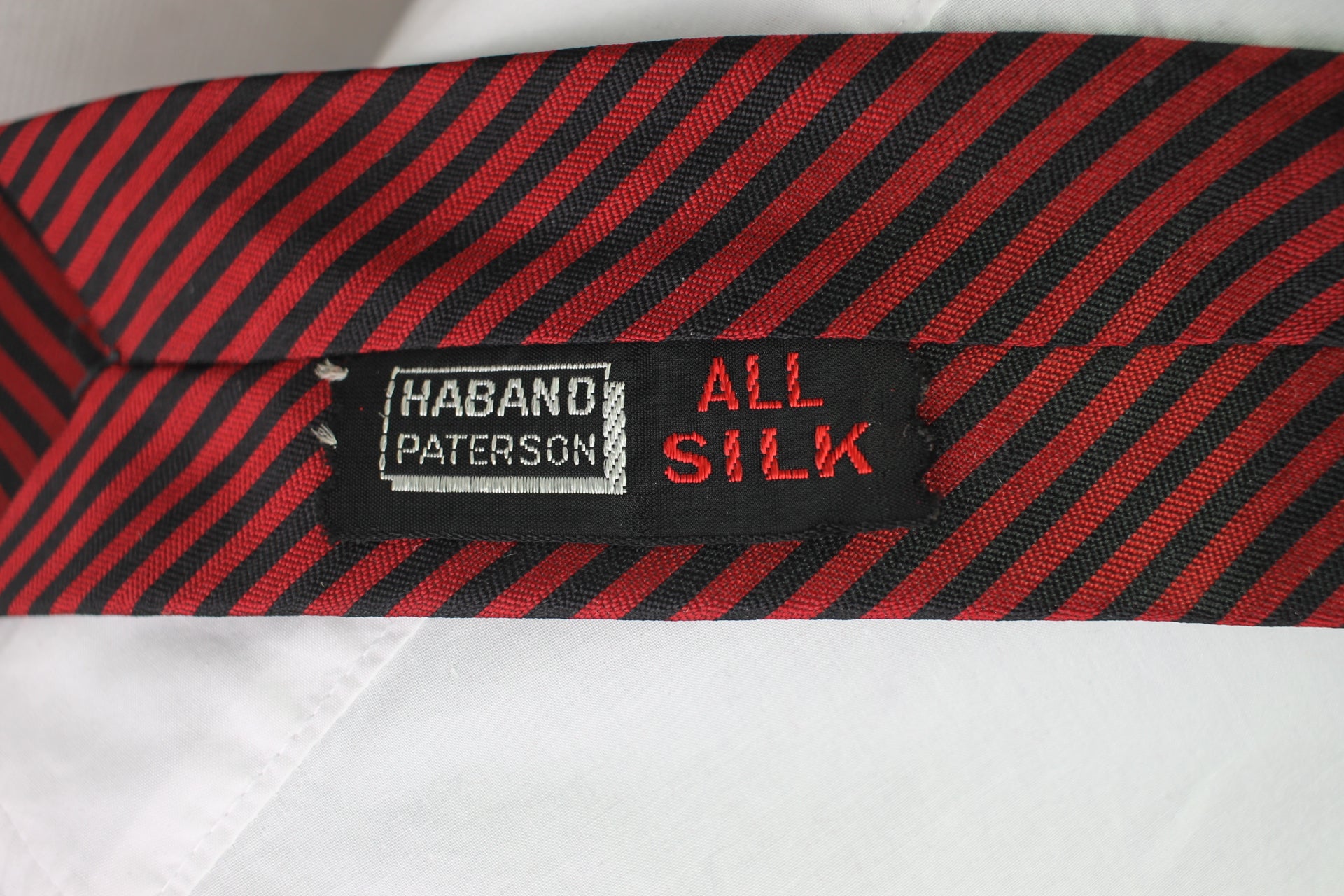 Vintage Haband Paterson all silk dark red black striped pattern skinny tie
