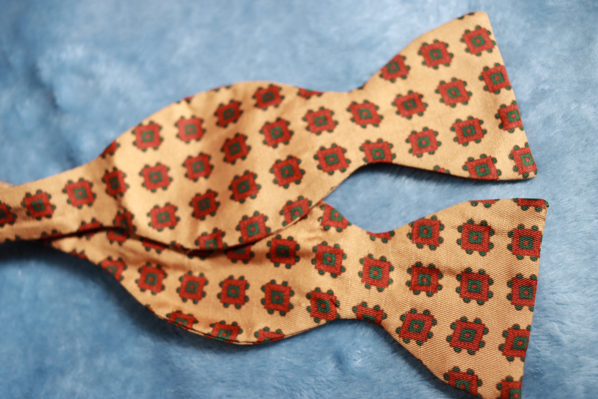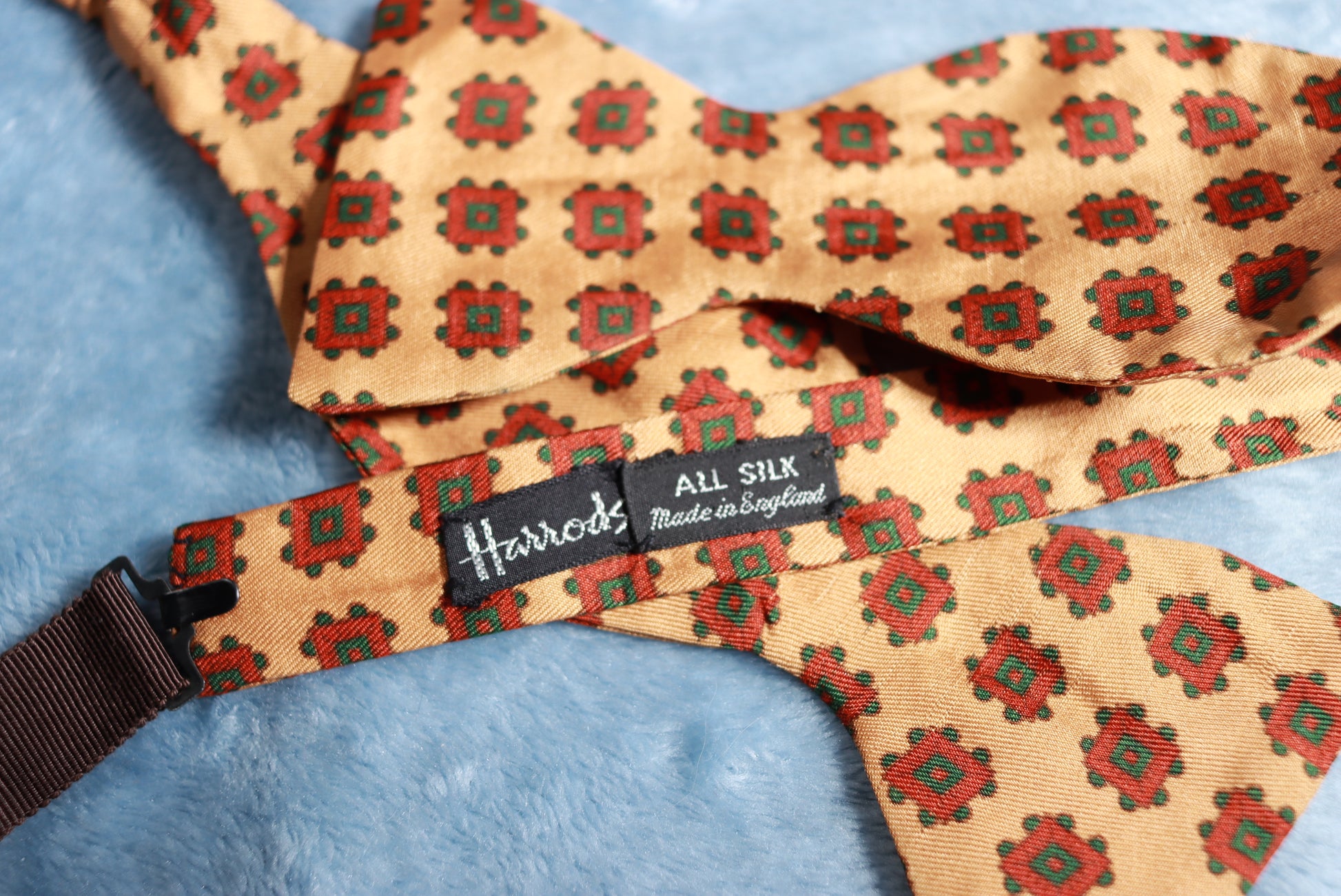 Vintage Harrods Silk Peach Thistle Bow Tie