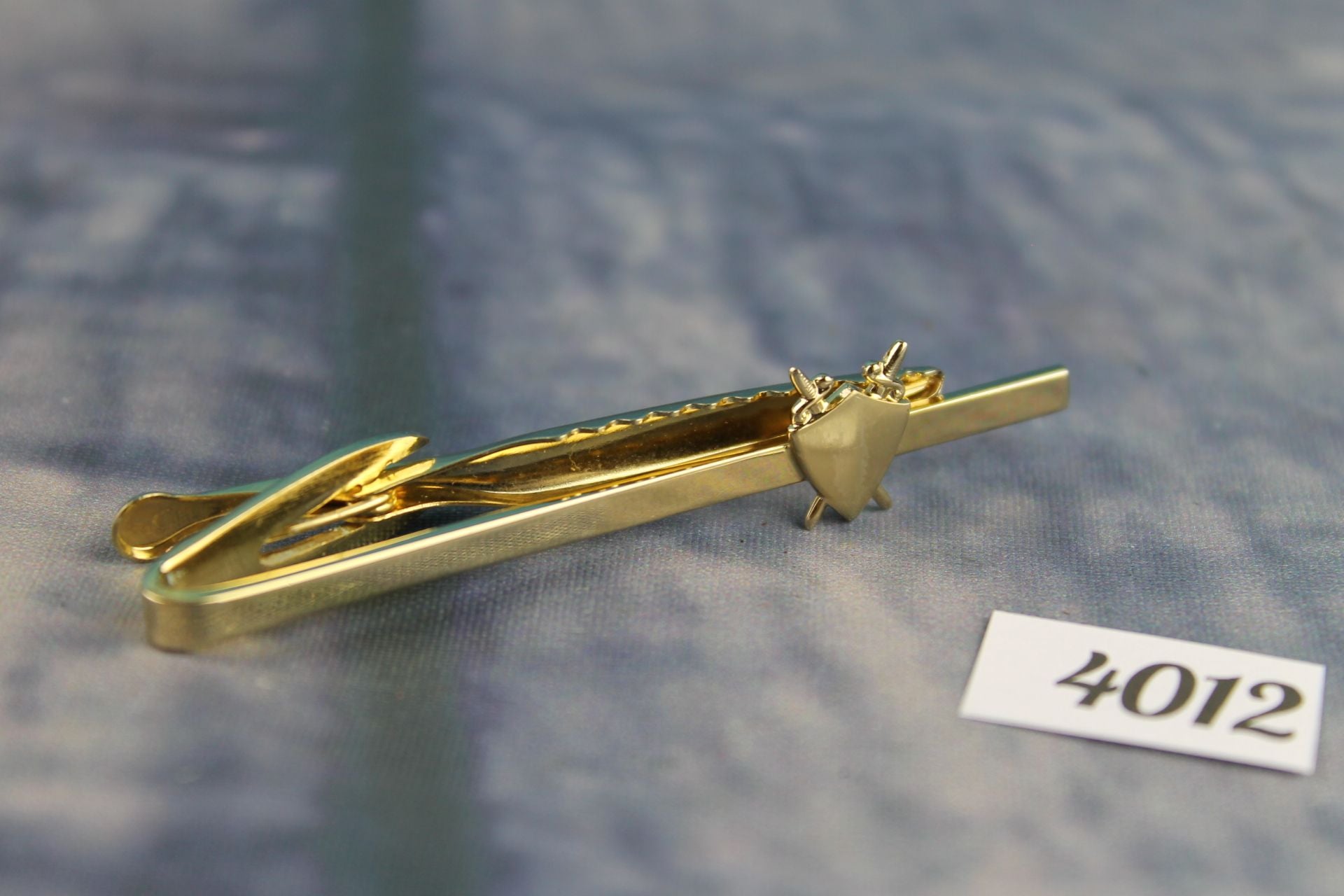 Vintage Hickock Gold Metal Tie Clip Shield & Cross Swords