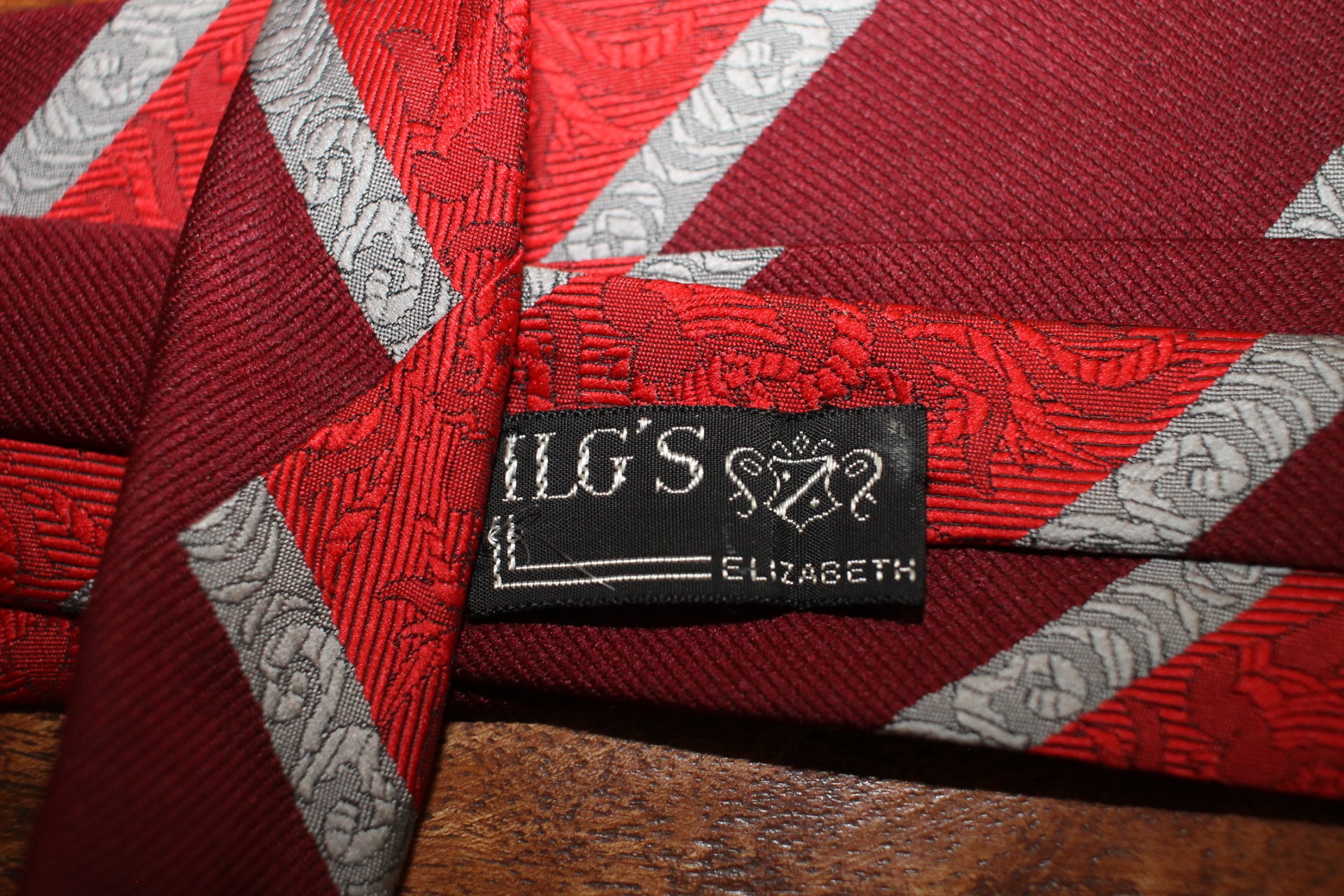 Vintage ILG'S Elizabeth 1950s burgundy silver red striped jacquard tie