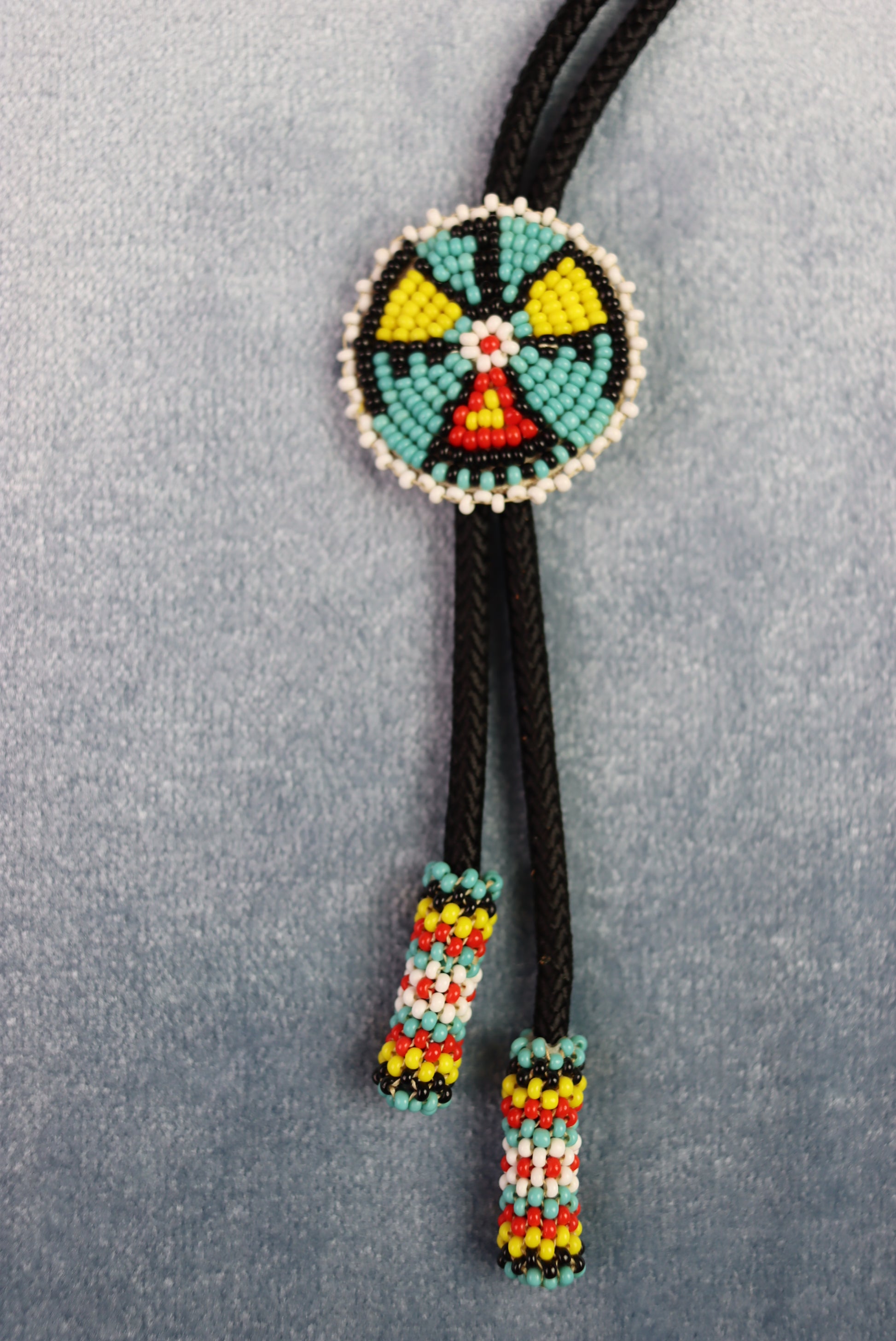 Vintage Indian Design Beaded Slide and Aiglets Bolo Western Tie