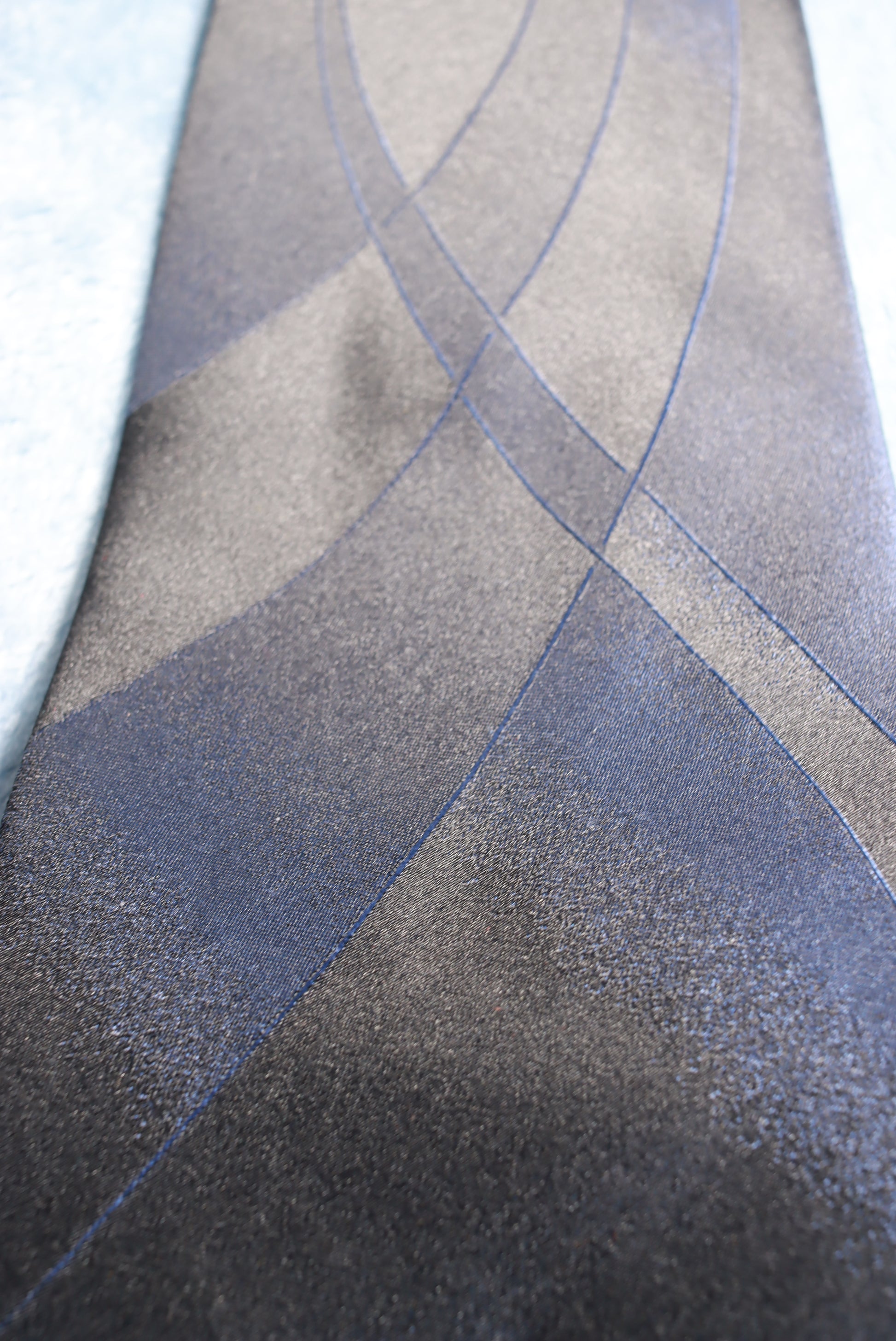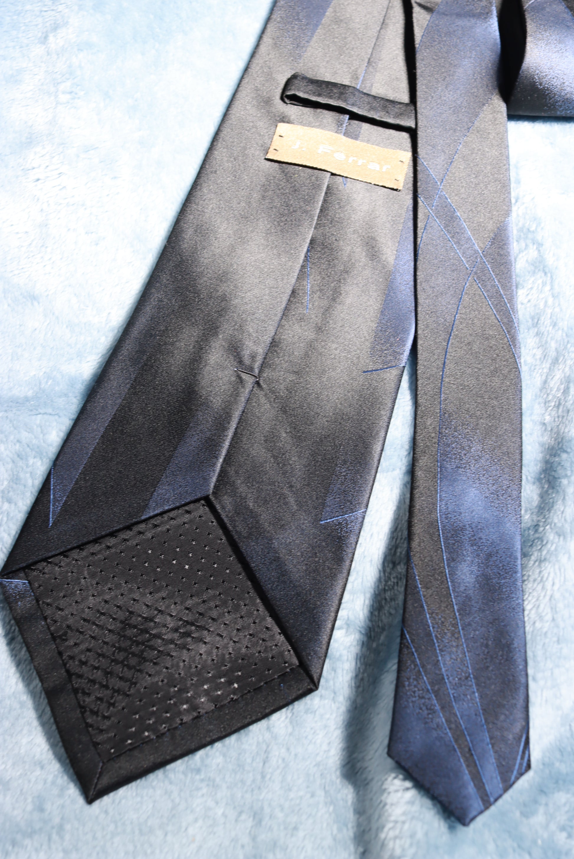 Vintage J Ferrar All Silk Black and Dark Blue Smart Tie