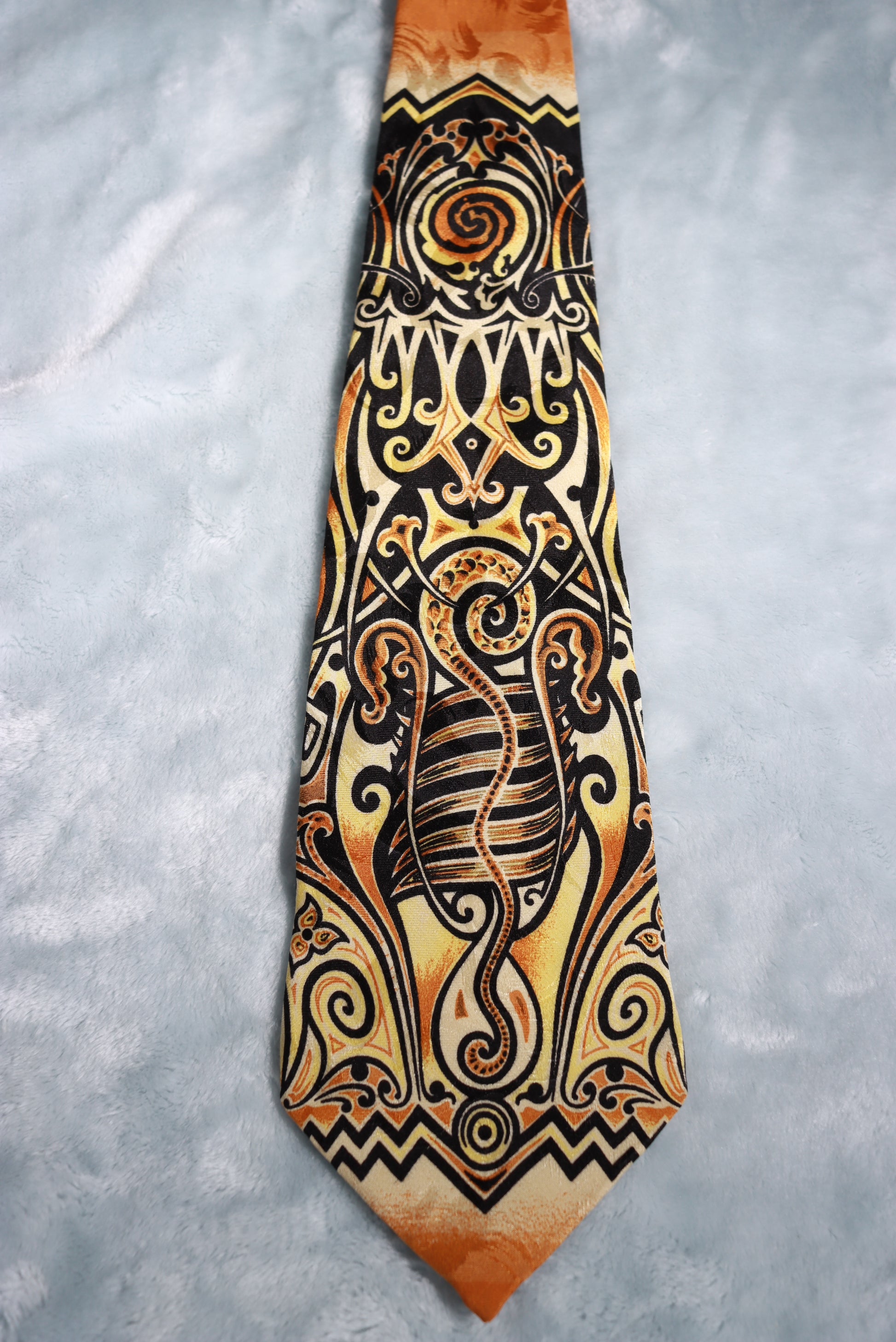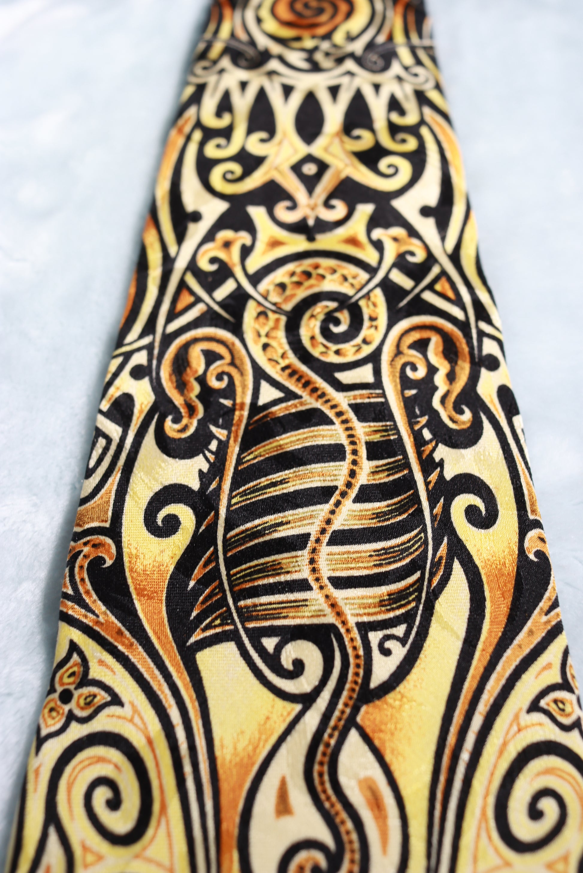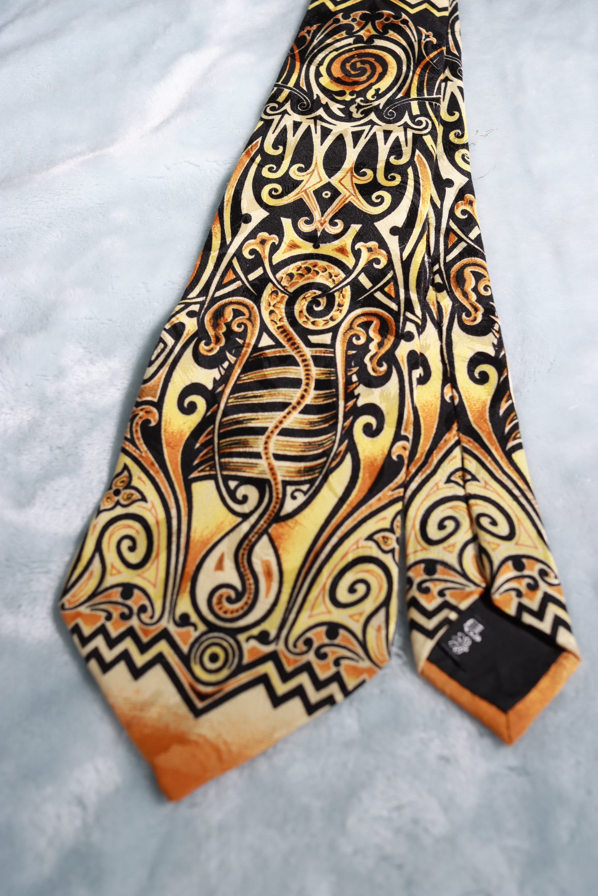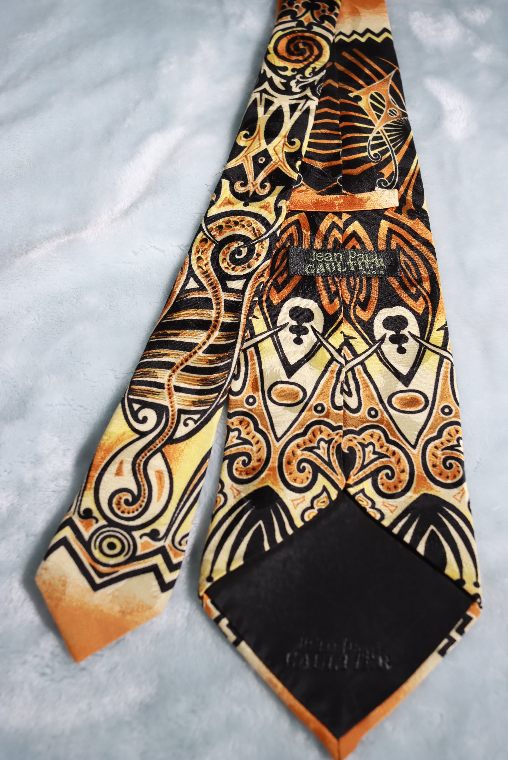 Vintage Jean Paul Gaultier Gold Black Abstract Silk Tie