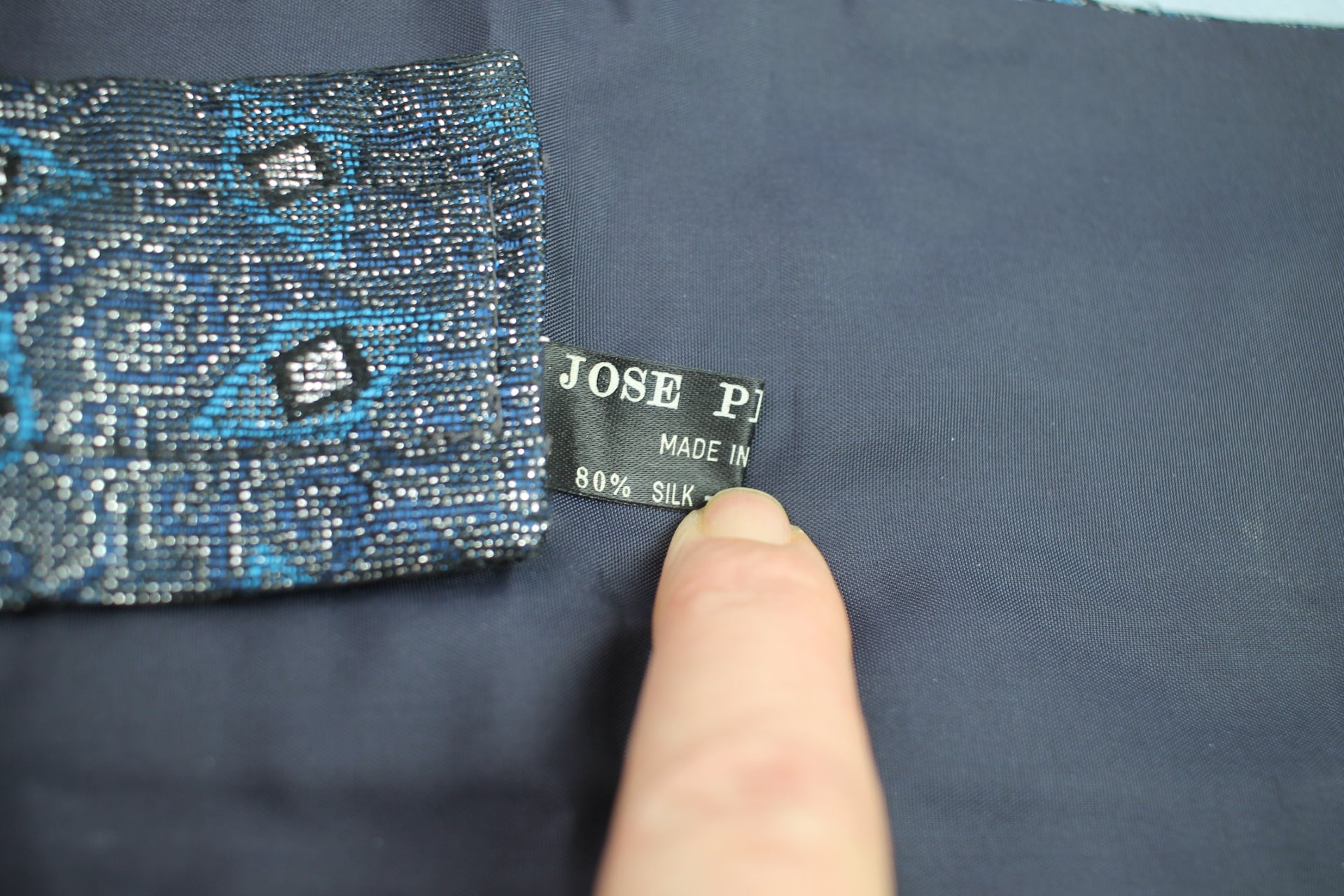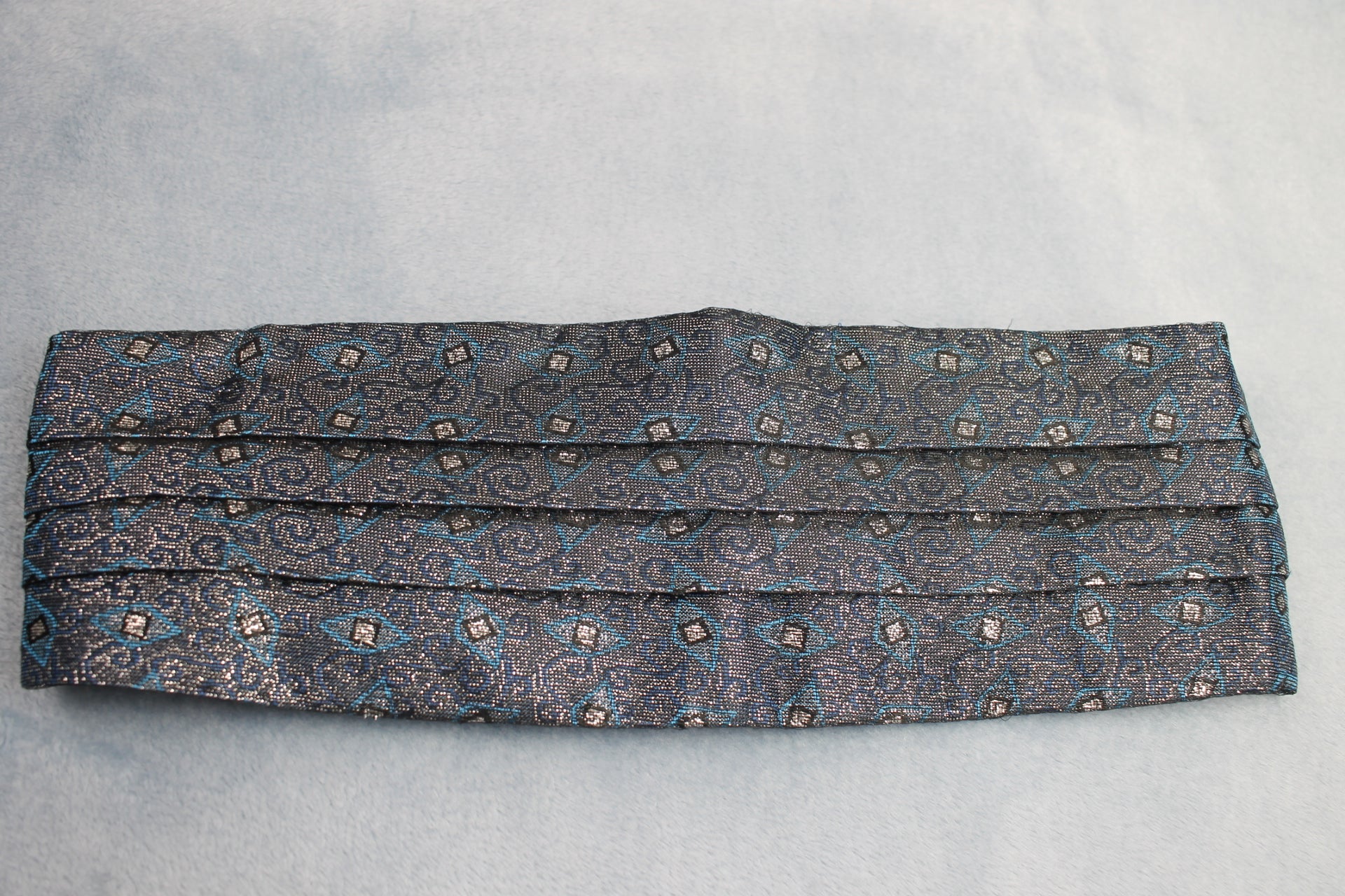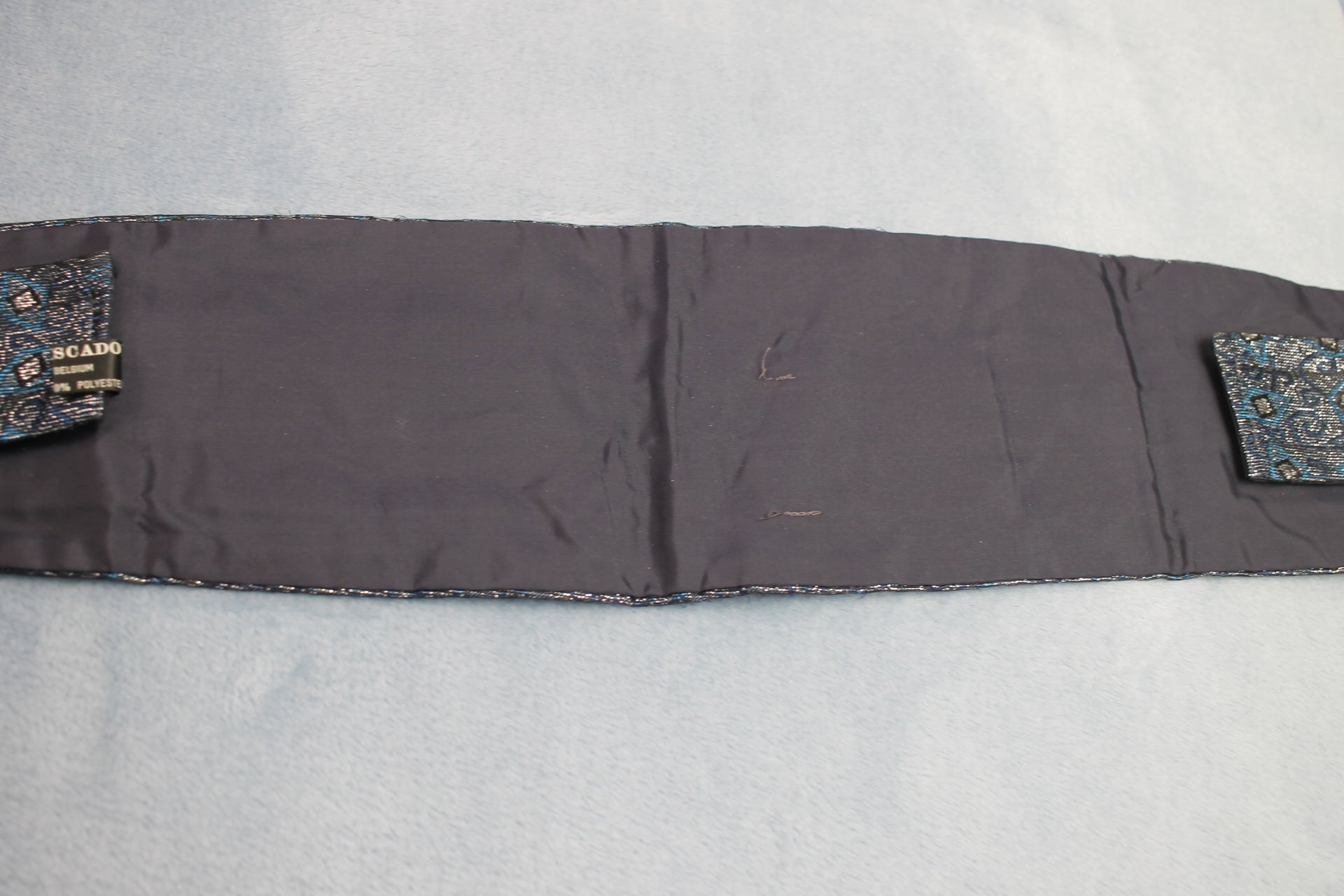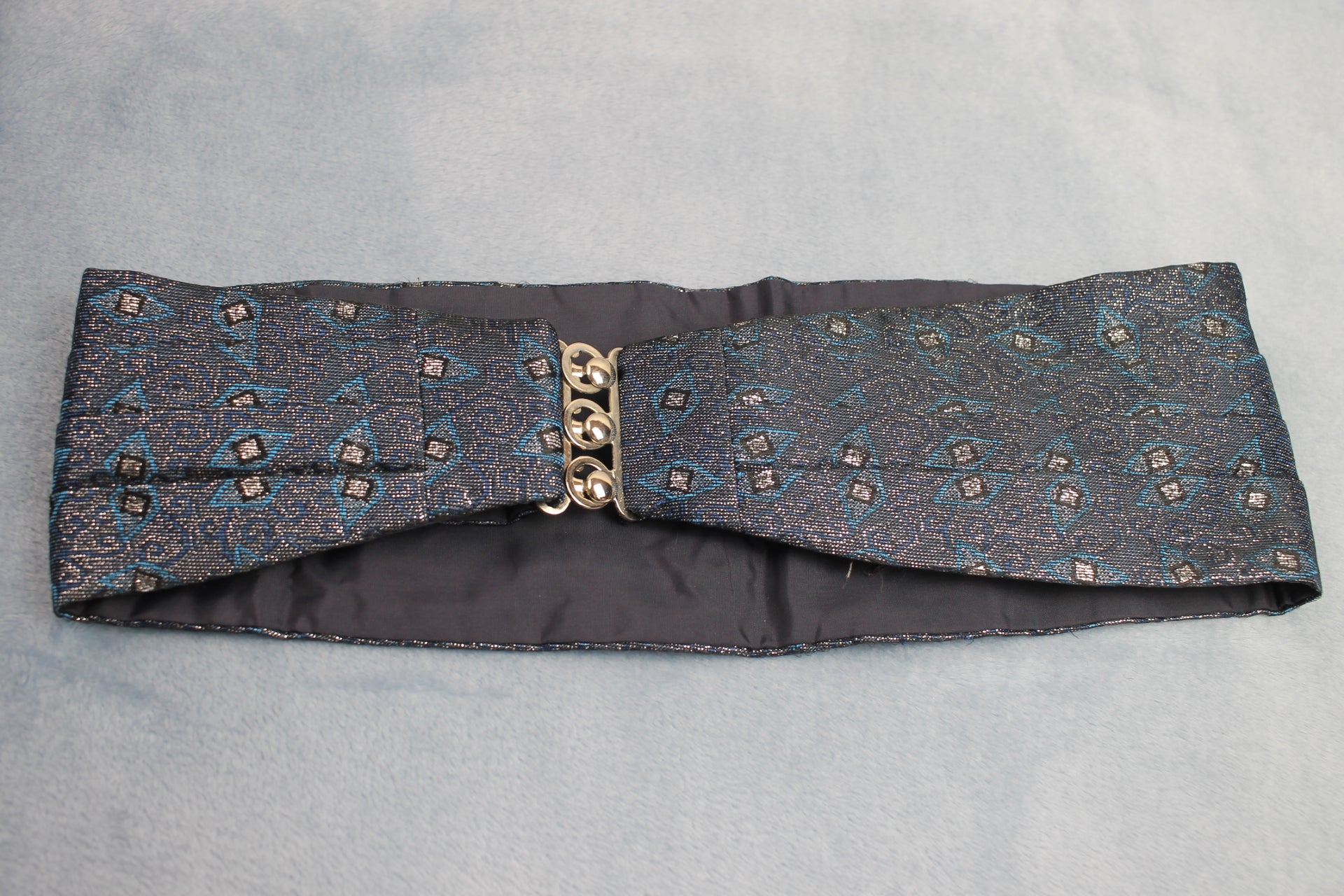 Vintage Jose Piscador blue black silver sparkly pleated cummerbund